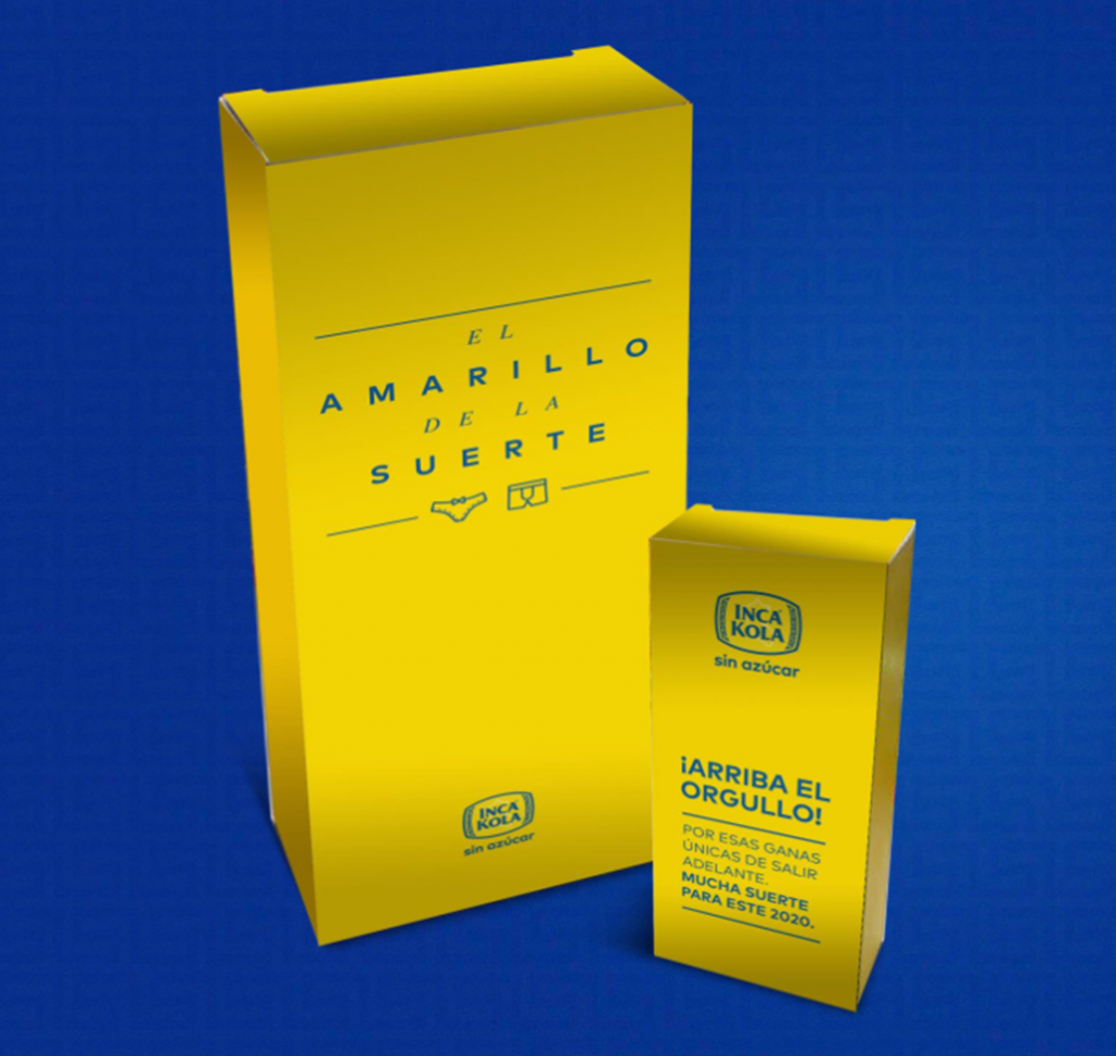 “Sabemos que en el Perú las cábalas de Año Nuevo son comunes cada 31 de diciembre y que la ropa interior amarilla es la más popular entre ellas. Para sumarnos a esta tradición, buscamos llegar de manera más personal a nuestro público mediante el pack “Amarillo de la Suerte”, porque Inca Kola está junto a los peruanos en su lucha por salir adelante y recibir el año con todas las energías para cumplir sus retos”, señaló Gabriel Chávez, Gerente de Marketing de Coca-Cola Perú.