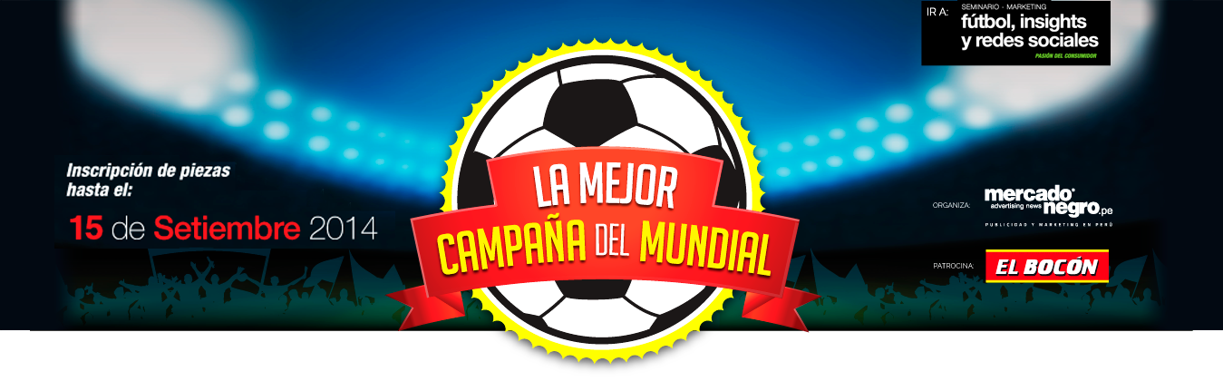 El Premio a la Mejor Campaña del Mundial, es organizado por Mercado Negro Advertising y Patrocinado por el Diario El Bocón, esta premiación busca destacar la creatividad así como el buen uso de los medios en cada una de las categorías premiadas, para esto hemos desarrollado un premio donde participan un grupo de empresas que hacen posible que una campaña tenga éxito es así que ponemos en el mismo nivel a las agencias creativas, a las realizadores, clientes y centrales de medios como un todo, un equipo que trabaja en busca de una buena comunicación en beneficio de la marca, de tal manera que en cada categoría se premiara al conjunto de empresas que haya participado en dicha campaña.
