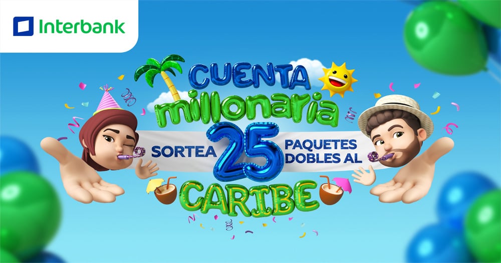 Interbank celebra por todo lo alto el aniversario número 25 de su reconocida Cuenta Millonaria, la cual sortea 4 veces al año un depa+un auto+estudios a un solo ganador, pero además suma a esta lista tradicional de premios, 25 paquetes dobles para el Caribe, un paquete por cada año de éxito de este instrumento financiero.