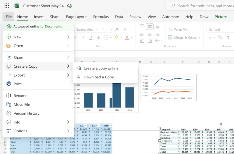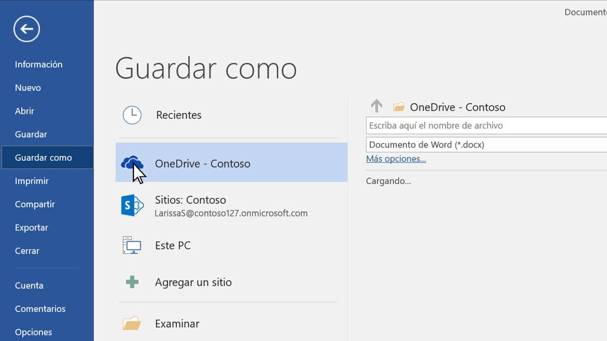 - No es necesario guardar como: el archivo siempre se guarda automáticamente. También puede crear una copia del archivo en línea o descargarlo a su computadora.