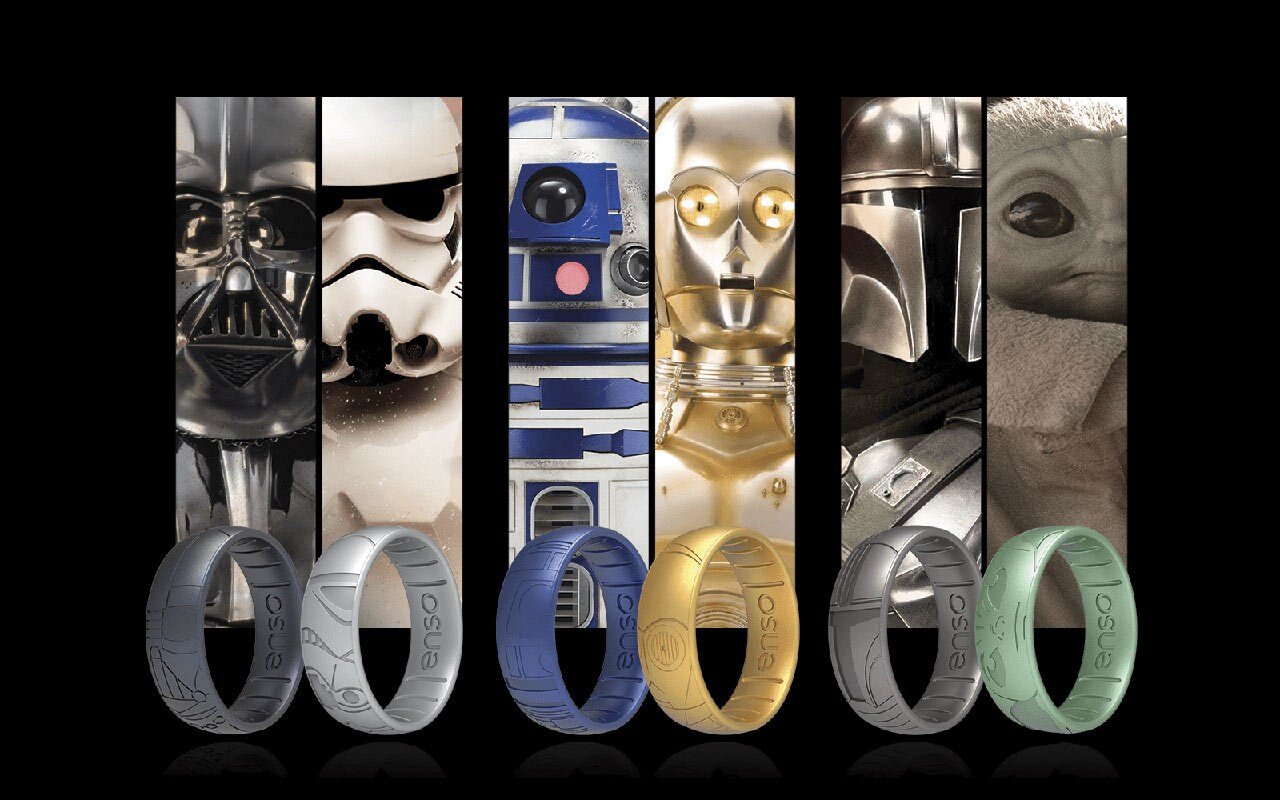 La marca de anillos de silicona, Enso Rings, lanzó una nueva colección inspirada en la saga creada por George Lucas. Los cuatro diseños de Star Wars tienen nombres inspirados en las famosas películas: desde el resplandor de Lightsabers hasta la historia de amor de Anakin y Padmé.
