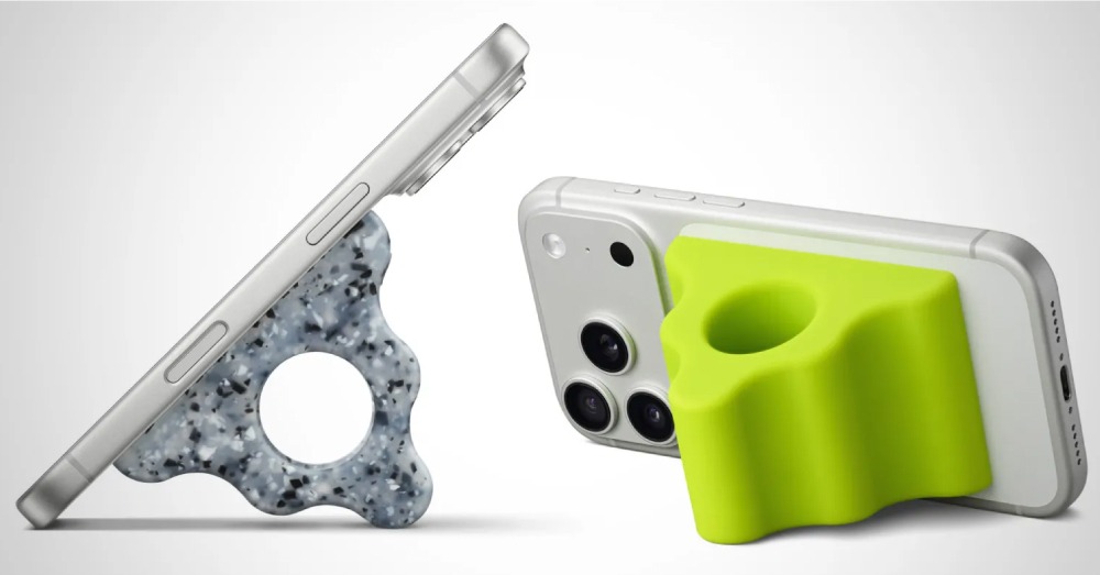 El Hikawa Phone Grip & Stand puede ser conectado mediante MagSafe en un segundo, sin necesidad de ejercer presión. Dicho accesorio viene en dos colores: verde chartreuse y gris jaspeado “Crater”.