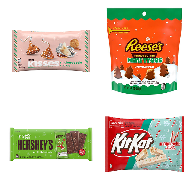 La compañía ha preparado una variedad de dulces alusivos a la navidad, como los Snickerdoodle Kisses, una presentación de menta de Kit Kat, ‘minitrees’ de Reese’s e incluso una barra de chocolate del Grinch.
