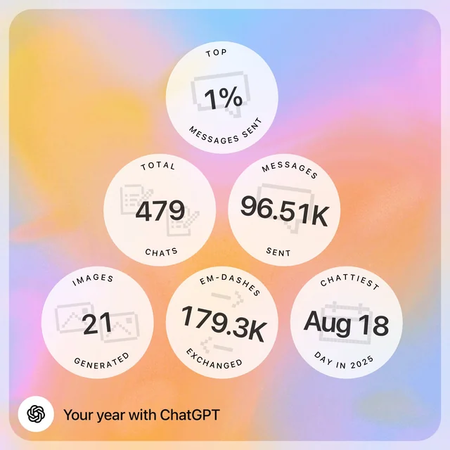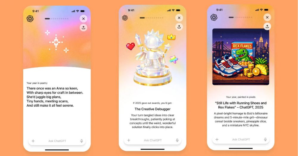 Siguiendo la lógica de Spotify Wrapped, el recap de ChatGPT incluye visuales dinámicos y reconocimientos personalizados según el tipo de uso que cada persona haya hecho del bot.