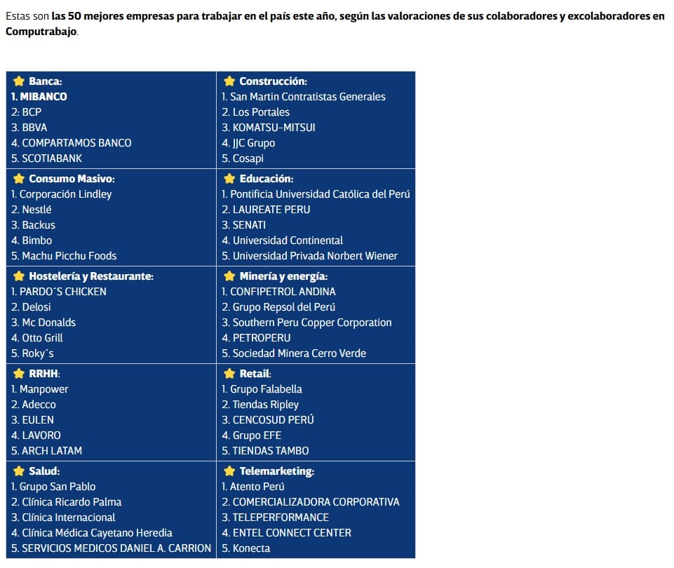 Computrabajo ha revelado la lista de los ‘Best Workplaces 2025’, un reconocimiento basado en millones de valoraciones de usuarios sobre sus experiencias laborales en empresas de Perú, Argentina, Chile, México y Colombia. En su 8ª edición, estos premios destacan a 250 organizaciones por su liderazgo, oportunidades de carrera, salario, prestaciones y ambiente laboral, consolidándose como una referencia clave en el mercado laboral latinoamericano.