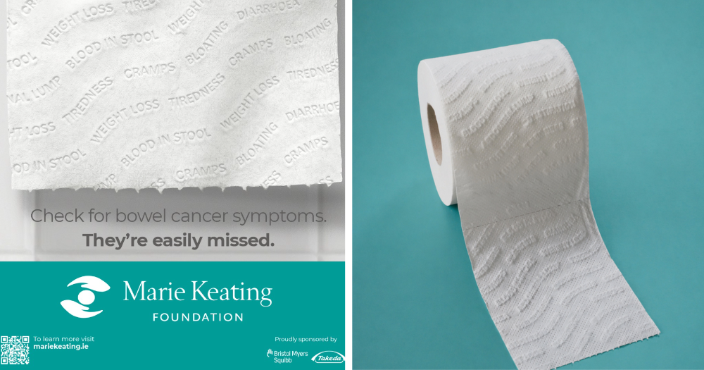 La iniciativa, desarrollada por Marie Keating Foundation, consiste en un panel que representa los síntomas mediante marcas casi imperceptibles en el papel higiénico, para enfatizar que el cáncer también puede pasar desapercibido.