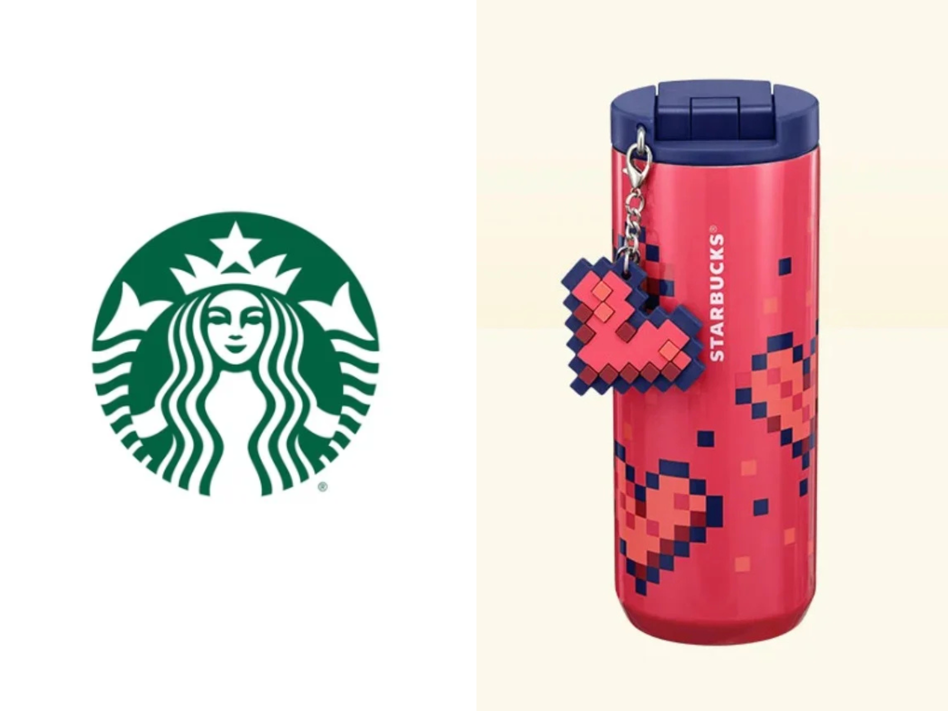 Este vaso presenta un acabado rosa brillante con corazones pixelados y un colgante en forma de corazón a juego. Con un precio de $27.95 USD, es una excelente opción para regalo o un artículo coleccionable para los fieles fans de Starbucks.