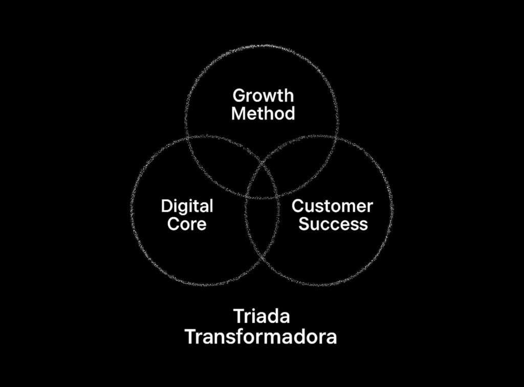 Por eso, la Triada Transformadora integra tres componentes que hacen que el CRM realmente se mantenga vivo, amplifique resultados y evolucione: