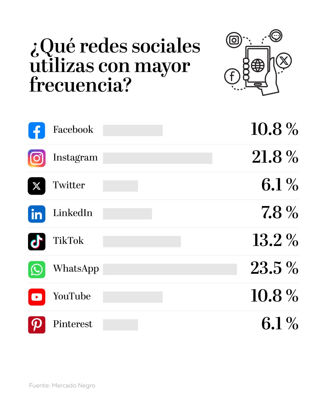 En esta línea es que le preguntamos a los seguidores del canal de WhatsApp de Mercado Negro sobre las redes sociales que más utilizan y estas fueron sus respuestas: