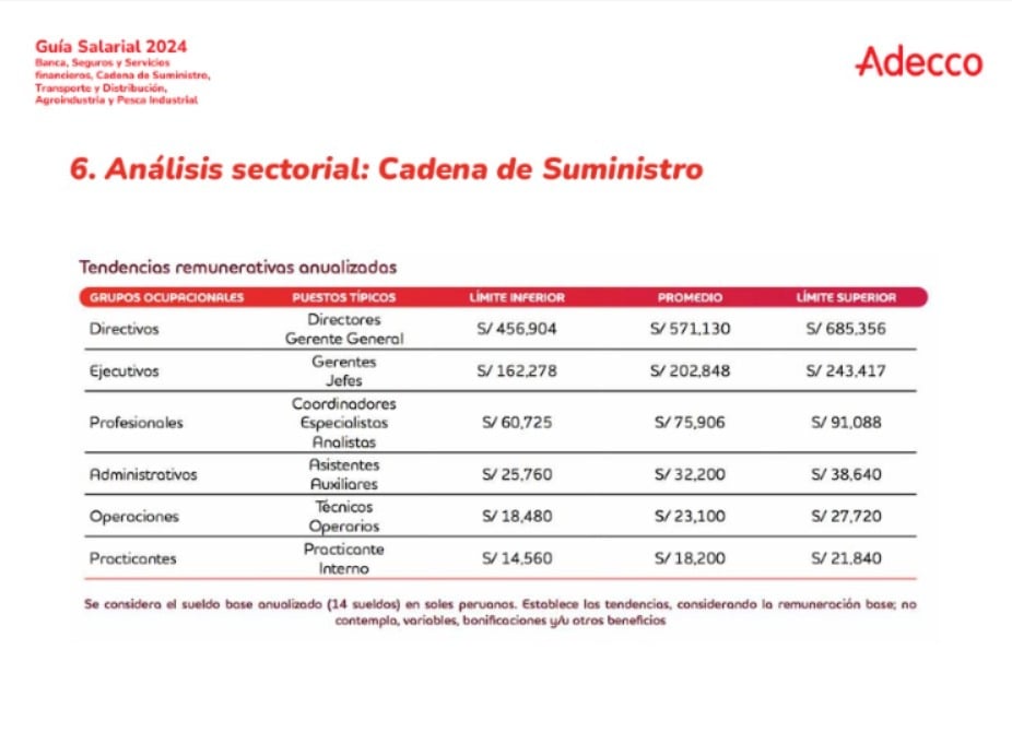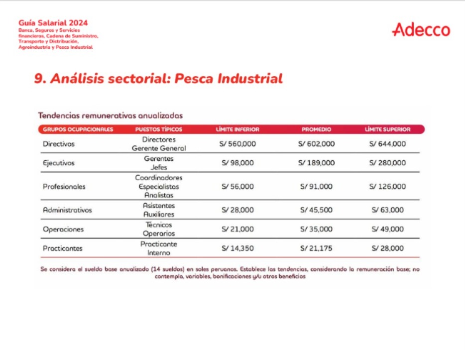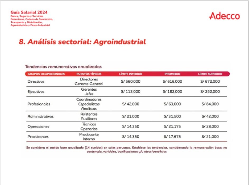 Conocer los rangos salariales de las diferentes industrias es fundamental tanto para empleadores como para empleados y aspirantes a puestos de alta dirección. La Guía Salarial 2024 de Adecco Perú proporciona una visión detallada de las remuneraciones en varios sectores clave del mercado laboral peruano.