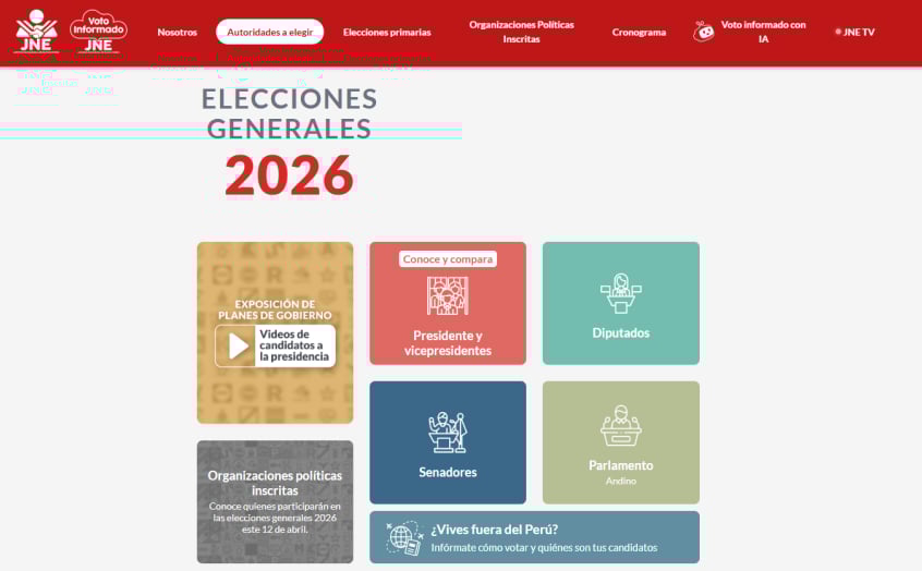 “Voto Informado” es una plataforma del Jurado Nacional de Elecciones (JNE) que permite conocer y comparar las propuestas de los partidos políticos. Asimismo, incluye videos de los candidatos a la presidencia explicando sus planes de gobierno en menos de 10 minutos.