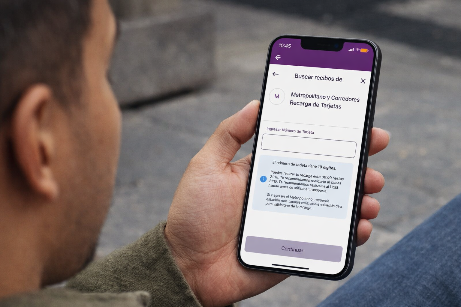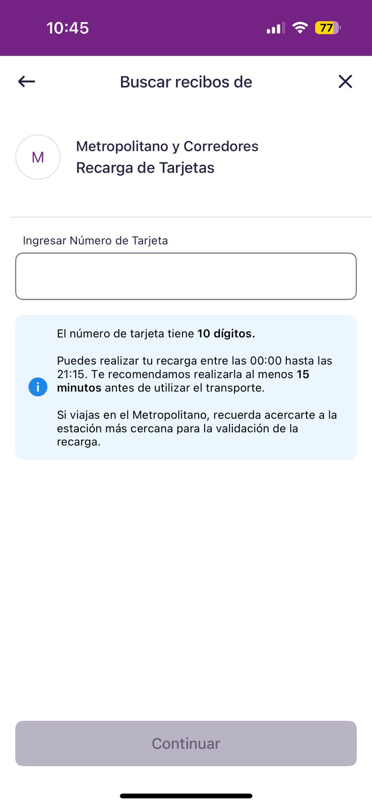- Ingresar los 10 dígitos de la tarjeta