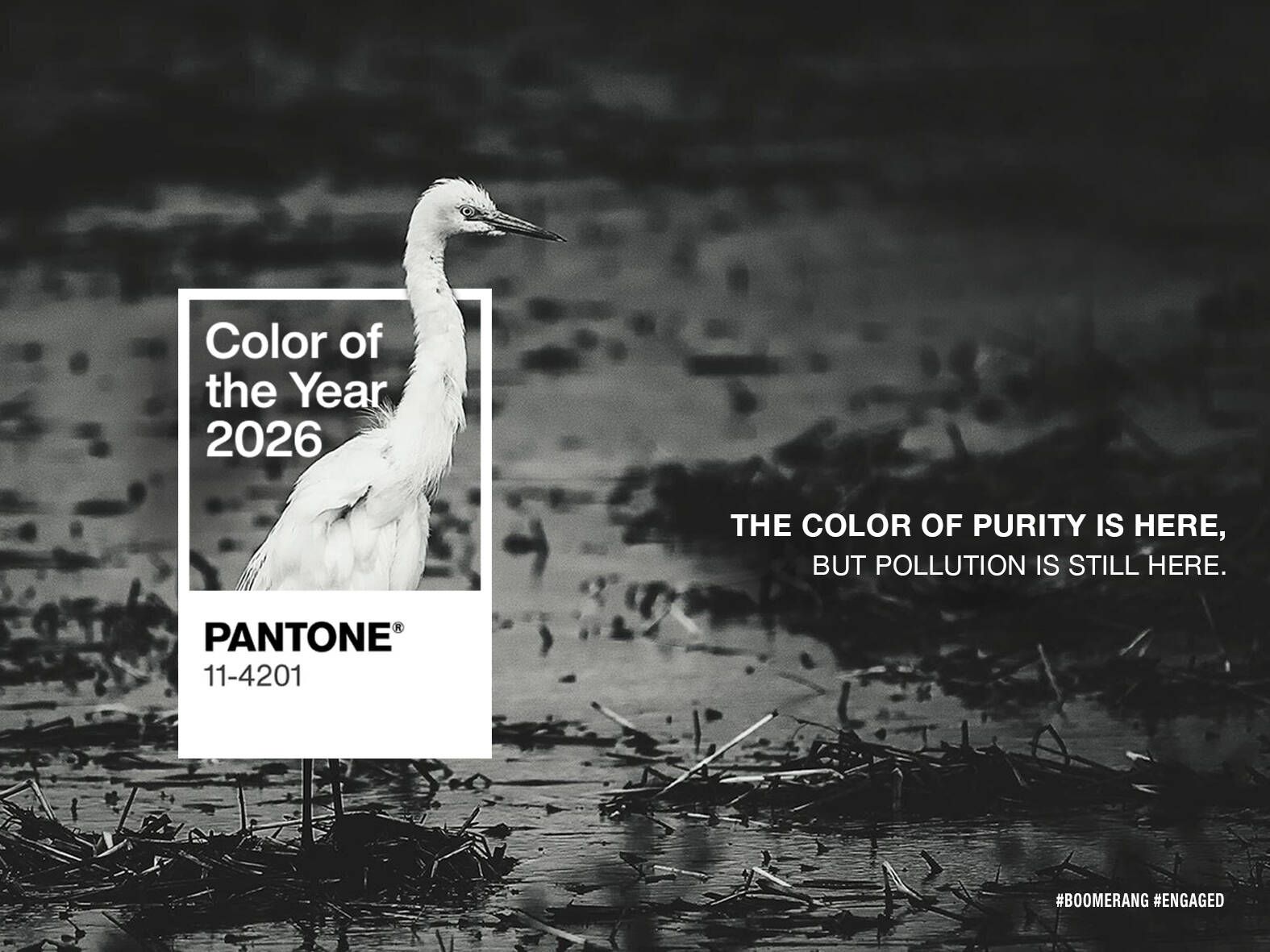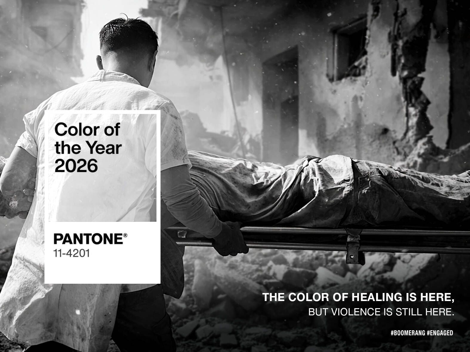 Esta lógica transforma por completo la lectura tradicional del anuncio anual de Pantone. En lugar de celebrar una tendencia, la campaña la tensiona y la coloca en una dimensión ética. Para Boomerang, la estética no puede operar desconectada de lo que ocurre fuera del marco.