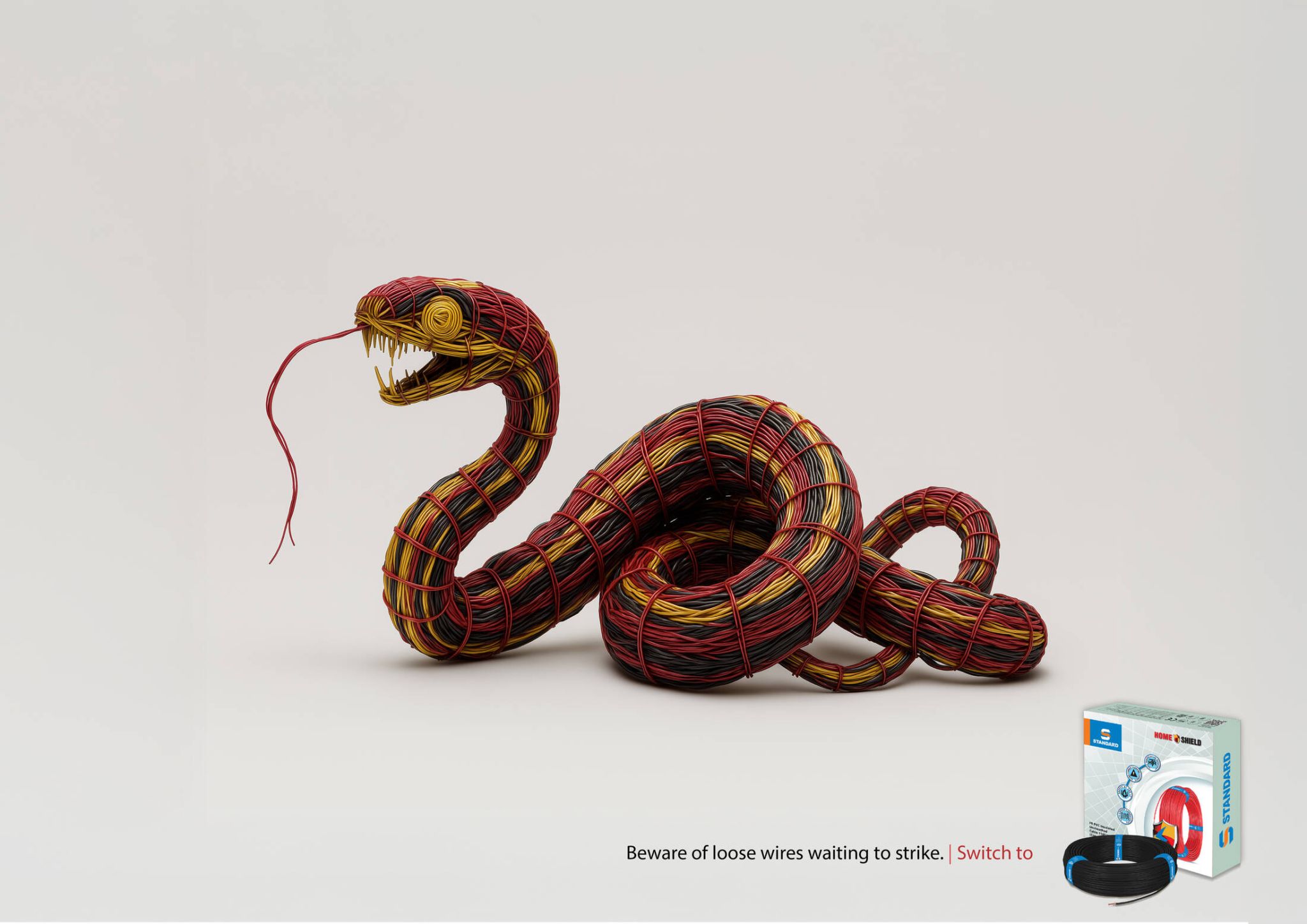 Creada por la agencia RK SWAMY para la marca Havells, la propuesta presenta 3 diferentes piezas en las que los cables tienen la apariencia de animales que pueden causar un daño grave en las personas.