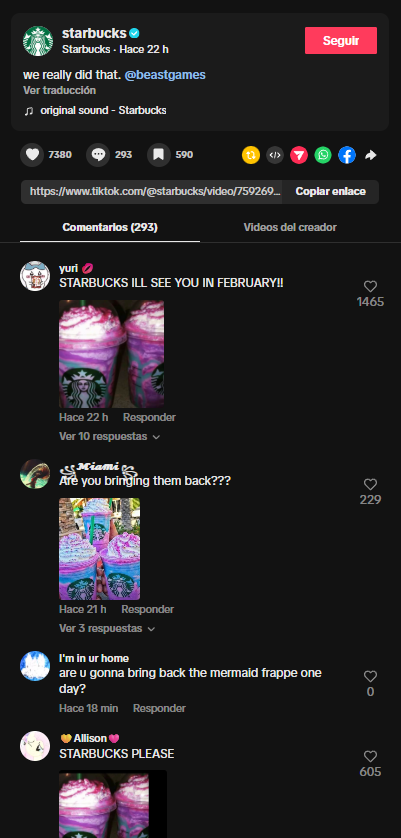Lo más llamativo es que, en pleno 2026, se ha desatado una locura en redes. Miles de fanáticos están compartiendo videos en TikTok y llenando la cuenta oficial de la cadena, con cientos de comentarios que ruegan que relancen el Unicorn Frappuccino.