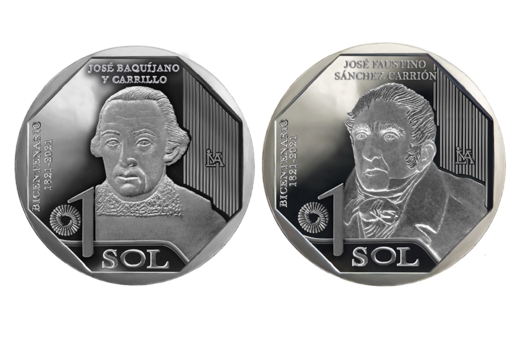 Como parte de la Serie Numismática “Constructores de la República Bicentenario 1821–2021”, el Banco Central de Reserva incorporó a dos políticos de notables acciones en el proceso de independencia del Perú. José Baquíjano y José Faustino Sánchez Carrión son homenajeados en las nuevas monedas del BCR