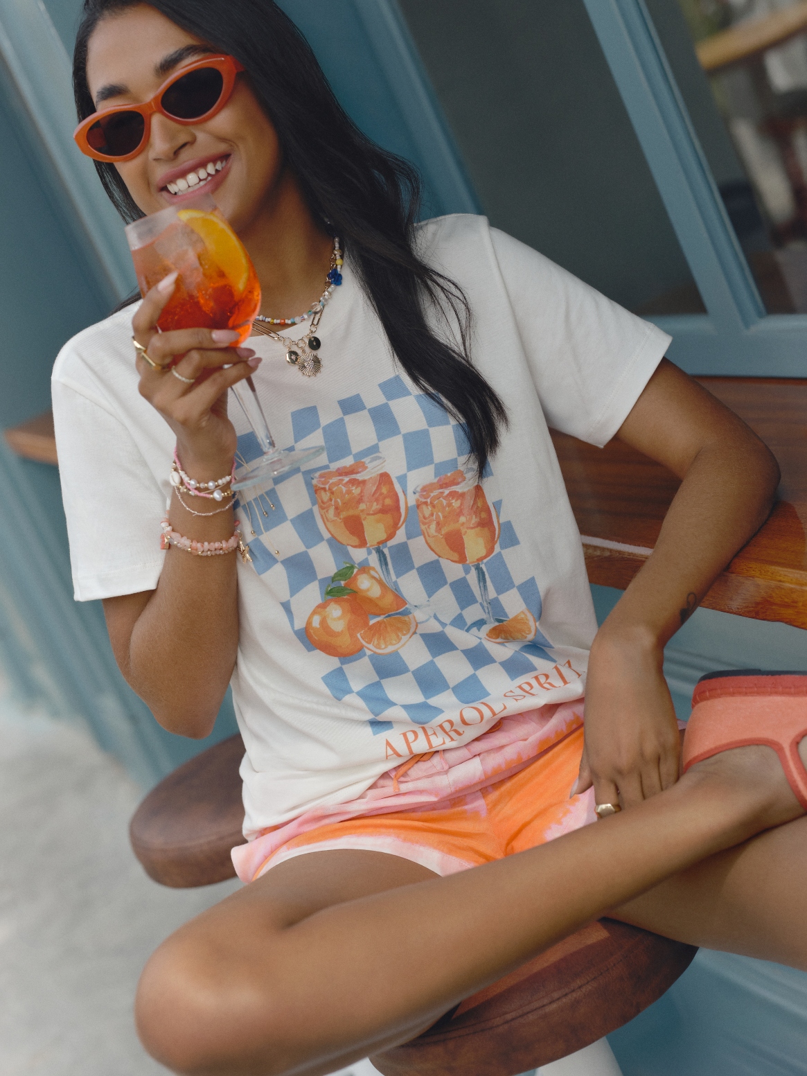 Aperol ha logrado posicionarse como una de las bebidas más populares con la capacidad de estar presente y conectar siempre en los momentos sociales y memorables de su público. Esto llevó a Falabella a unirse a una marca tan diferente, demostrando su espíritu por desafiar los límites de la moda sin dejar de lado la frescura.
