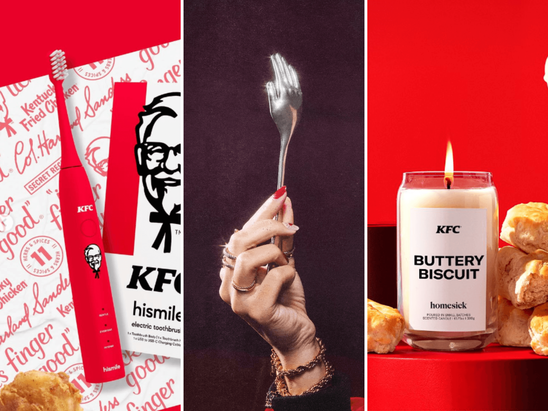 La cadena se asoció con la marca de cuidado bucal HiSmile, para crear una pasta dental (como ninguna otra) con sabor a pollo frito. Esta tiene un sabor similar a la receta original del pollo de Kentucky Fried Chicken, con sus 11 hierbas y especias secretas. Una peculiar propuesta que en un principio, parecía una simple broma del April Fools’ Day y culminó con un original lanzamiento