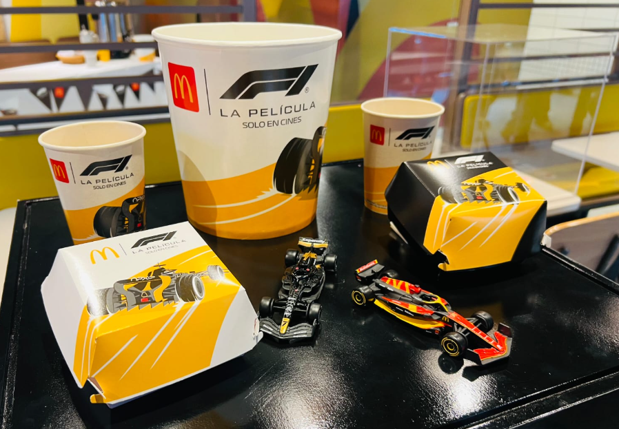 Fiel a su estilo, el fast food no ha querido ser ajeno a la fiebre ante la llegada del film y por ello se ha animado a lanzar un menú temático. Este, además de plasmar toda la energía y adrenalina de las pistas de la F1 en su tradicional packaging, trae dos modelos coleccionables y funcionales.