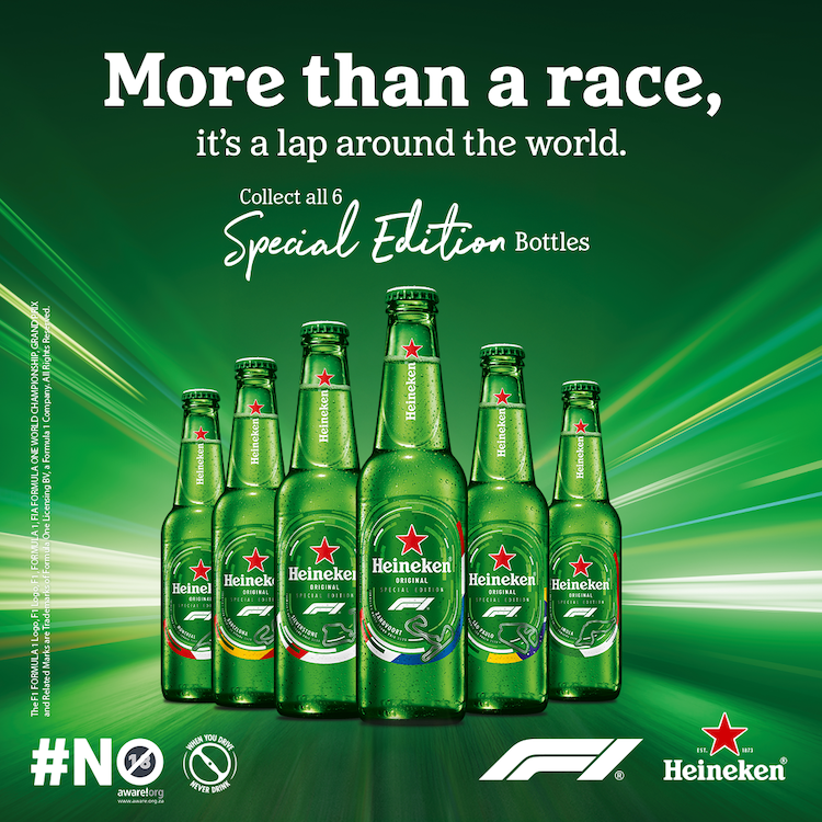 Por su parte, Alex Drake, director de marca de Heineken Sudáfrica, señaló que “esta campaña es una celebración global, con Heineken lanzando botellas para despertar la emoción y la pasión por la Fórmula 1, de una manera en la que nadie quede fuera. Con las botellas de edición especial, quisimos llevar la experiencia premium de la F1 al hogar, celebrando el deporte que todos conocemos y amamos”.