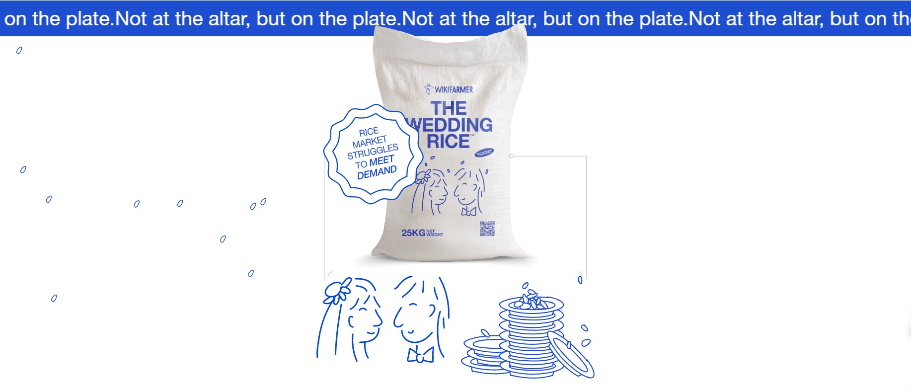 En ese sentido, Wikifarmer ofrece su plataforma para que los productores de arroz no comestible puedan comercializarlo, y anima a los consumidores a comprarlo para destinarlo a las bodas. De esta forma, la compañía pretende ayudar a aumentar el valor de las cosechas y, al mismo tiempo, favorecer el equilibrio entre la oferta y la demanda.