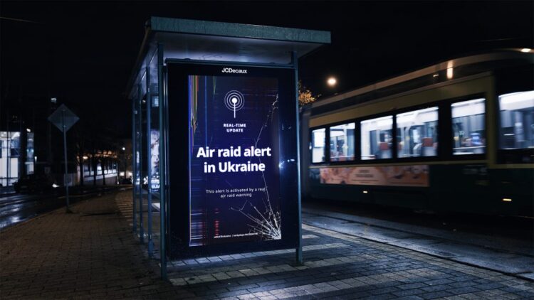 Además, la campaña utiliza datos oficiales de la aplicación Air Alarm de Ucrania, garantizando que las alertas sean en tiempo real. Cuando una de ellas se activa, los mensajes de UNICEF aparecen instantáneamente en los soportes digitales de la ciudad.