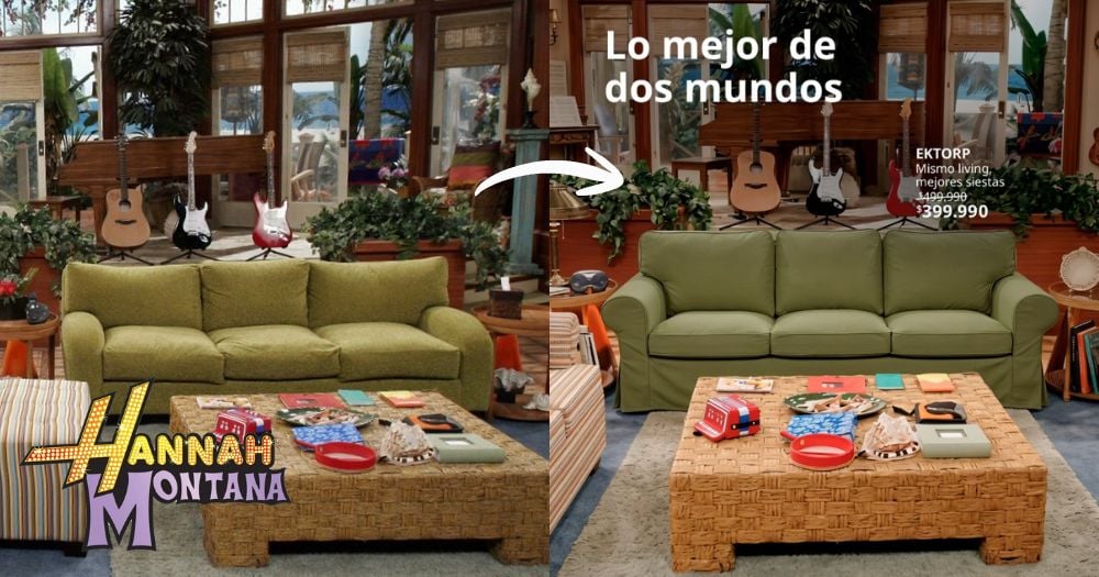 De cara al 20 aniversario de Hannah Montana, IKEA Chile aprovechó la tendencia para promocionar uno de sus sofás como si fuera parte del universo de la icónica serie. Bajo el lema “mismo living, mejores siestas”, la marca conectó la estética del programa de Disney con la comodidad de su producto.