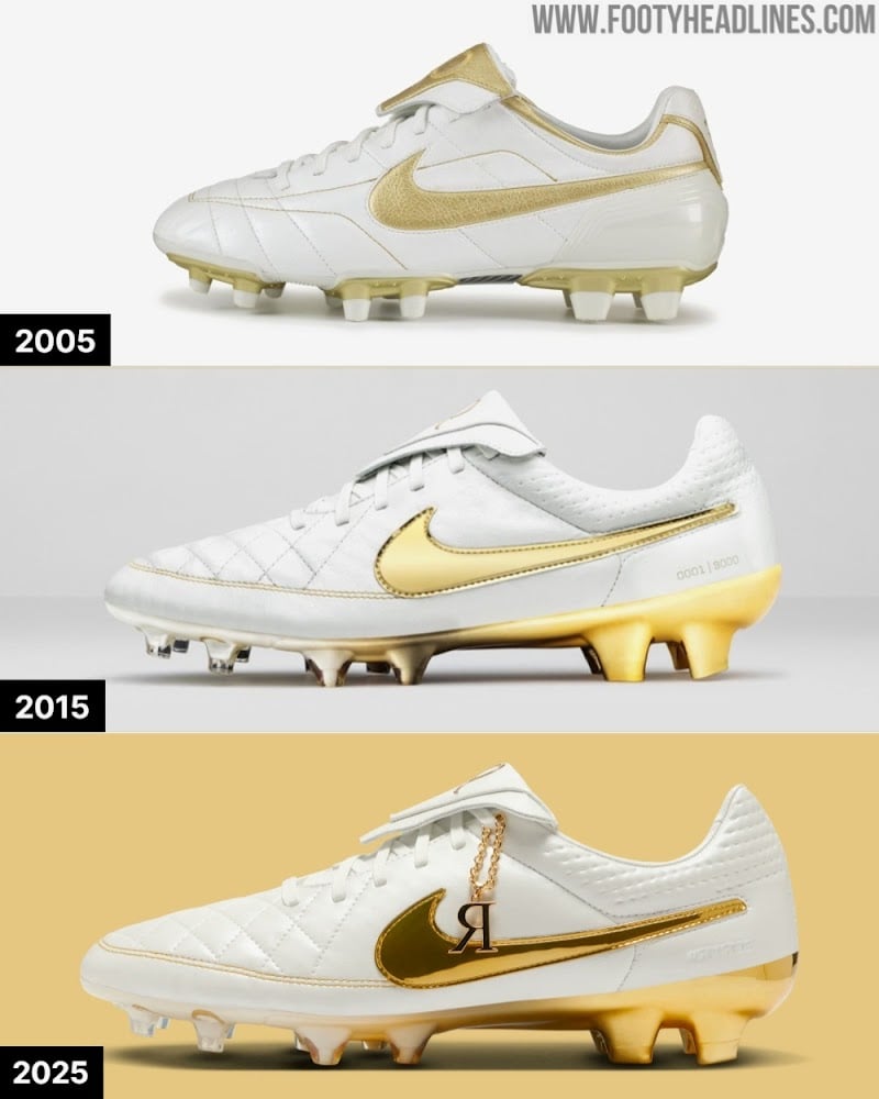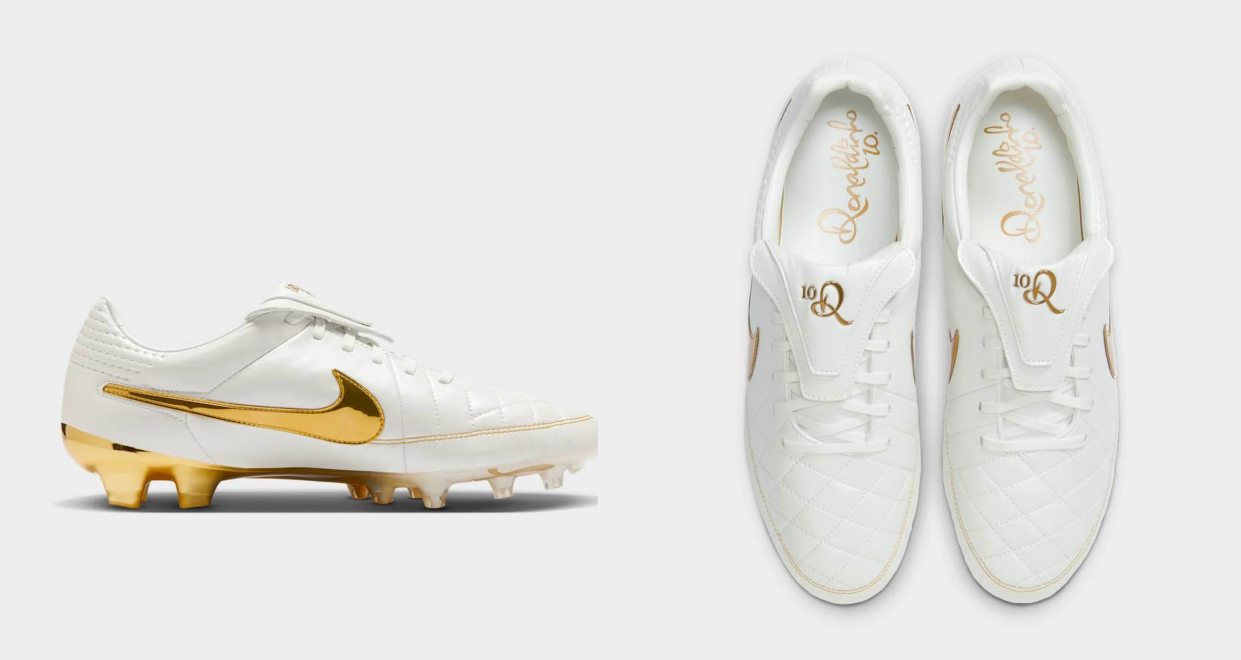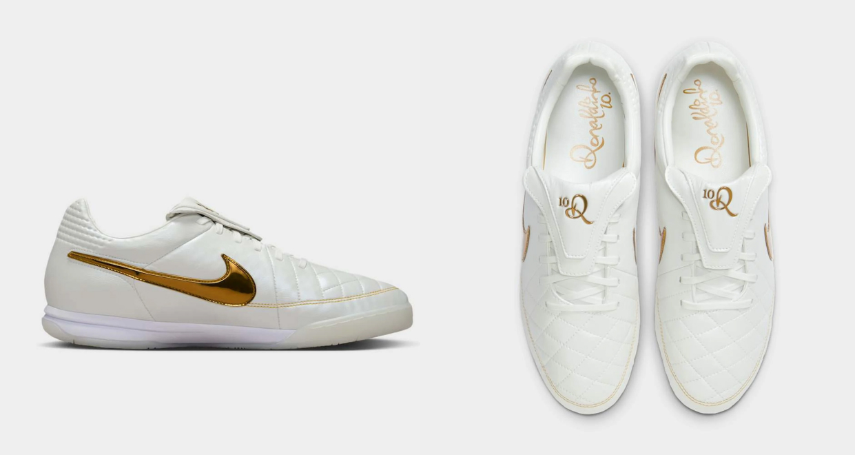 Debido a su impacto en la cultura popular, Nike ha hecho un remake de los chimpunes Tiempo con los que Ronaldinho hacía magia. Esta edición llega 20 años después del diseño original blanco con dorado y representan un homenaje al legado del astro brasilero.