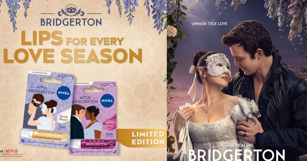 Bajo el nombre de “NIVEA x Bridgerton”, la propuesta consiste en una línea de bálsamos labiales creada en asociación con la marca de cuidado personal. Esta se compone de 4 diferentes aromas inspirados en ese mood romántico y elegante de la serie: Rose Meringue, Peach Tea, Vanilla Biscuit o Blackberry Pie.