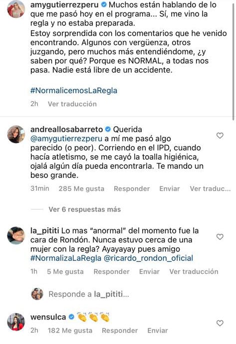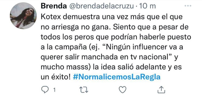 Luego de esta iniciativa -realizada por Kotex junto a la agencia VALOR SOCIOS DE MARCAS-, la reacción en los medios de comunicación y en las redes sociales no se hizo esperar. Hasta el momento, los hashtags #NormalicemosLoNormal y #NormalicemosLaRegla son tendencia en Twitter, generando centenares de miles de interacciones y comentarios alrededor de la acción. A su vez, en las plataformas digitales de Amy, se muestran mensajes de solidaridad de diferentes personalidades como Gianmarco, Daniela Darcourt, Yahaira Plasencia, entre otros.