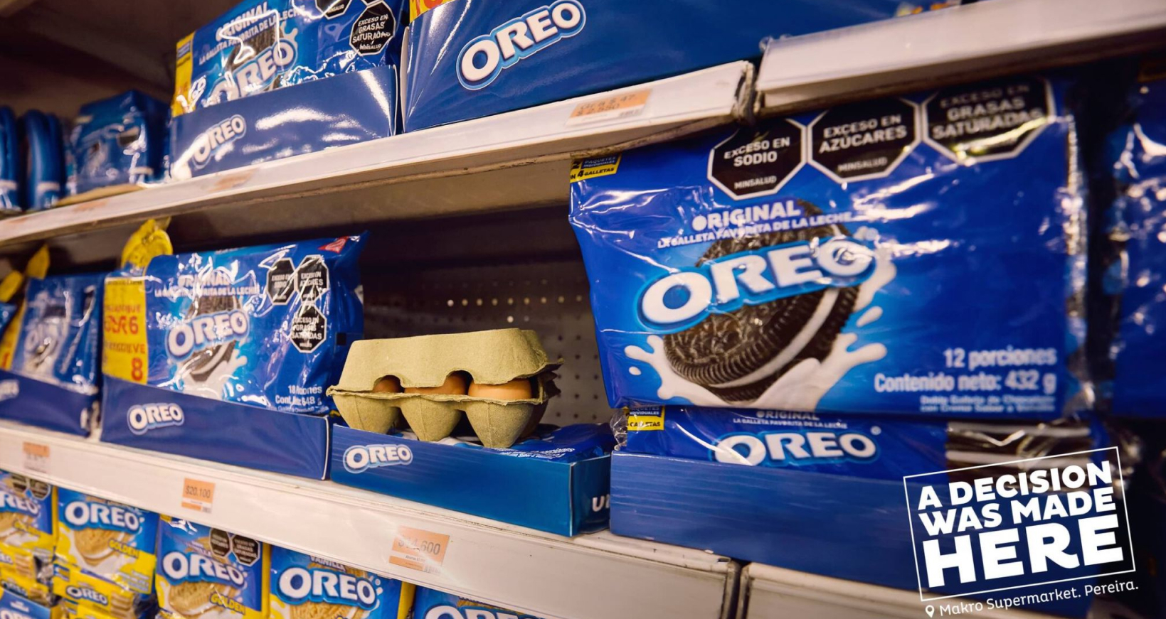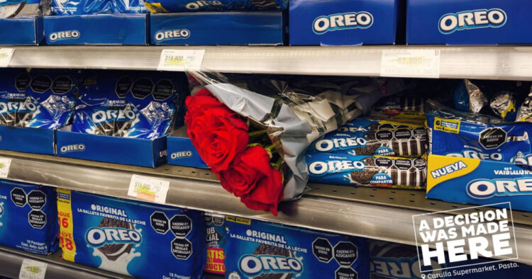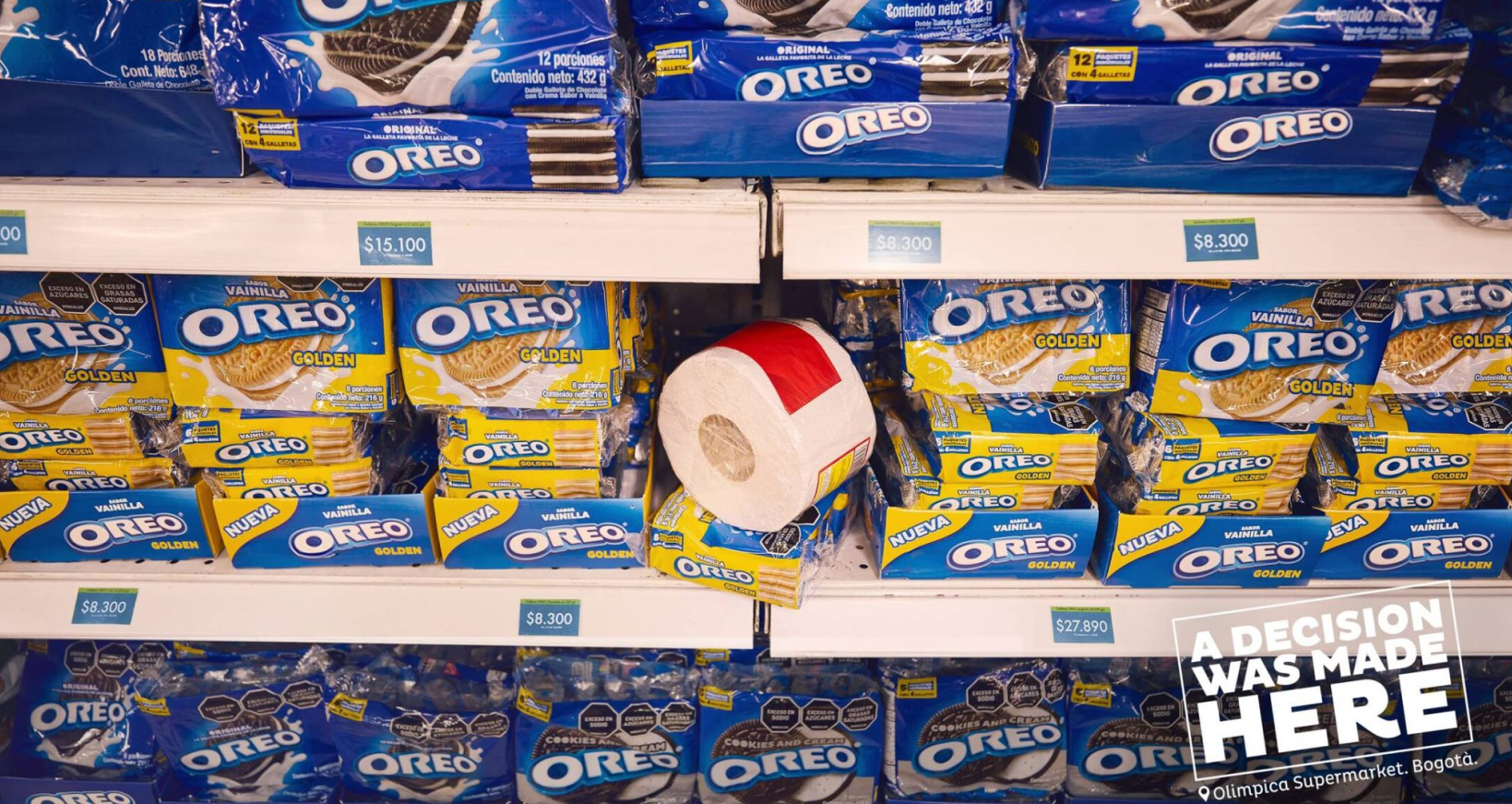 Precisamente, imágenes de diversas situaciones en las que alguien sacrificó algo por elegir un paquete de Oreo han sido recopiladas para una campaña colombiana, desarrollada por la agencia LePub. La secuencia muestra cómo esos insumos terminaron abandonados en el pasillo de la marca de galletas en los supermercados.