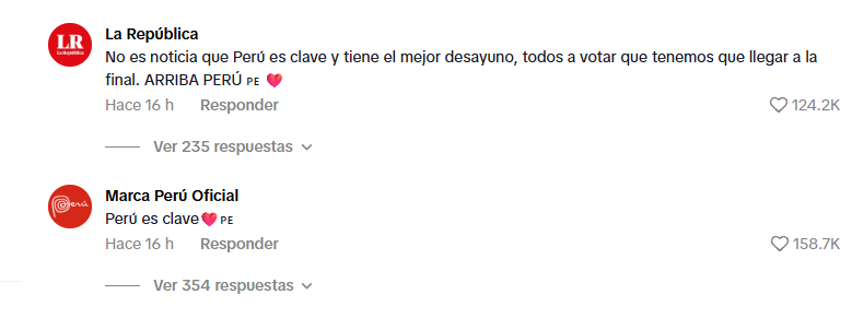 La conversación digital contó además con la participación de medios de comunicación como La República y Latina, así como de referentes de la industria del entretenimiento como Grupo 5, que utilizaron la tendencia para conectar con sus audiencias. Marca Perú también aprovechó el momento para reforzar la identidad gastronómica del país en un espacio global.