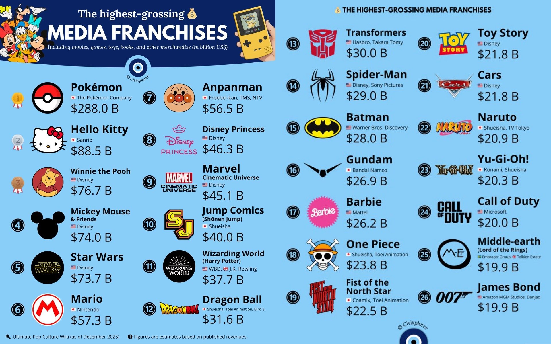 Según datos recogidos por Guinness World Records, la franquicia ha generado más de US$ 100 mil millones en ingresos acumulados desde 1996, cifra que la coloca como la franquicia de entretenimiento más rentable del mundo, por encima de muchas otras compañías cinematográficas tradicionales.