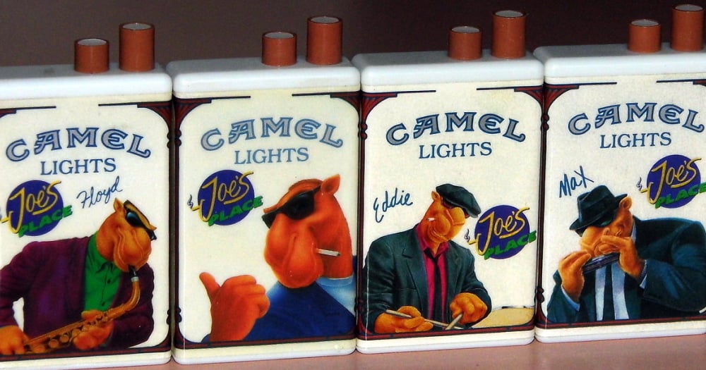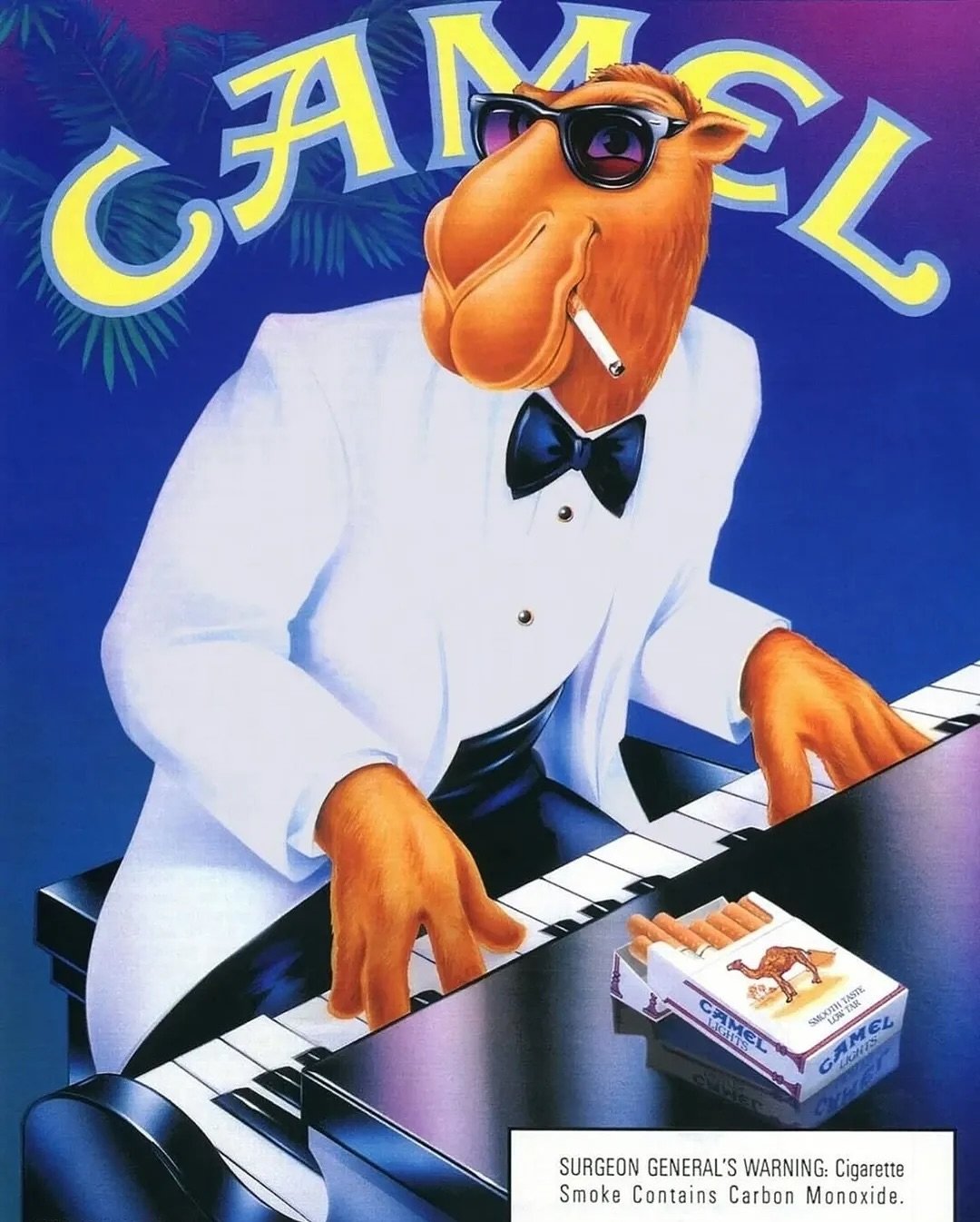 El personaje de Joe Camel, el camello animado que fuma cigarros Camel, fue creado para una campaña en Francia en 1974. Sin embargo, en 1988 fue rediseñado por Mike Salisbury para el mercado estadounidense y lanzado en una campaña muy llamativa.