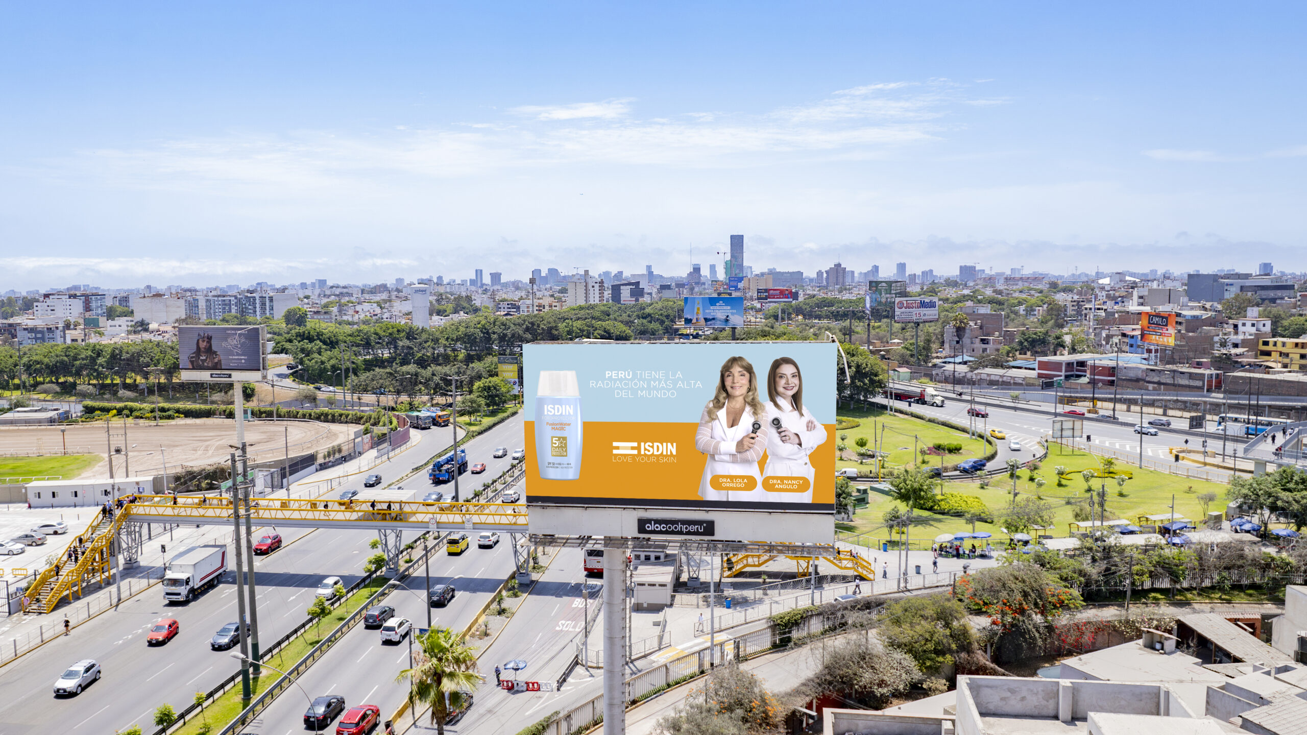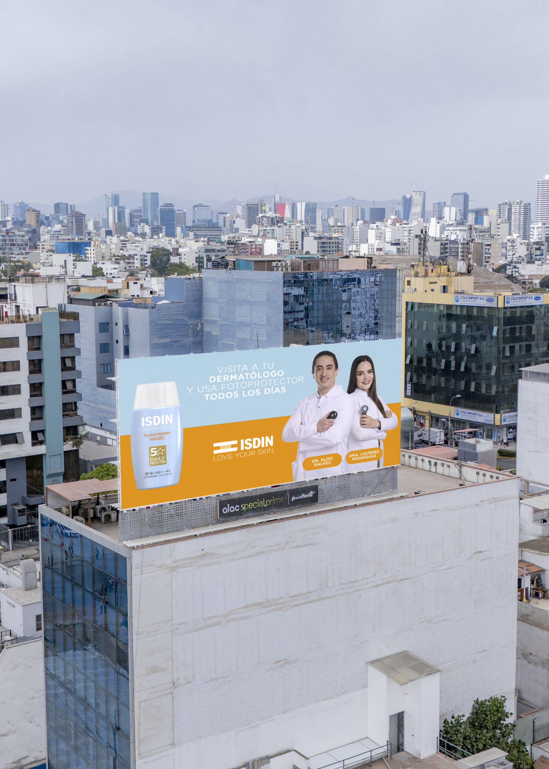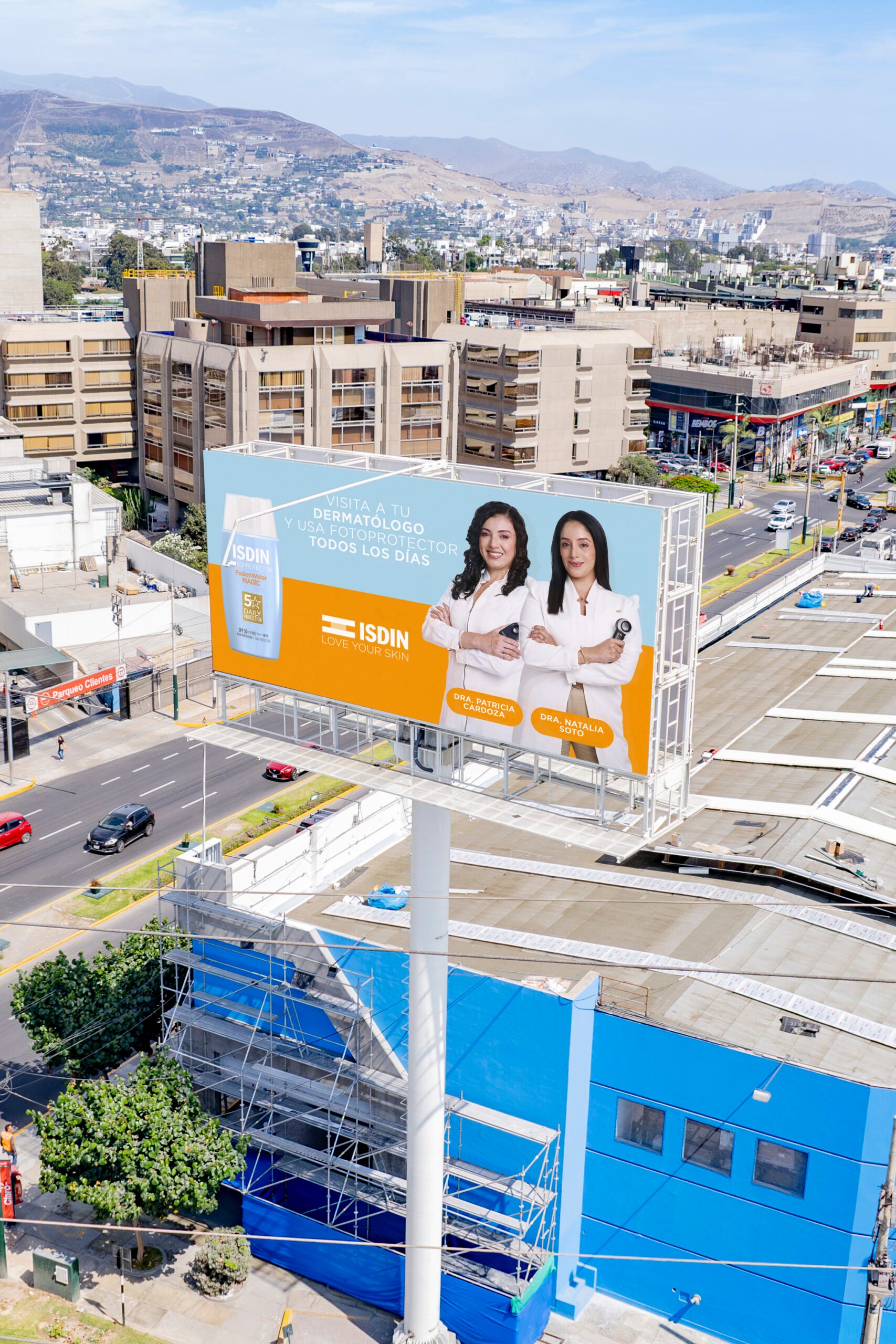 Aprovechando la vía pública cómo un espacio de alto impacto, ISDIN se une a destacados dermatólogos para compartir consejos preventivos y educativos en paneles publicitarios de Lima. Esta acción recuerda la relevancia de usar fotoprotector en el día a día.