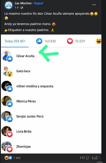 La imagen se hizo tan viral que incluso personajes mediáticos se pronunciaron en favor de Andy. Una de ellas, la actriz cubana que radica en México, Livia Brito. “Estaré pendiente, saludos desde México”, comentó en la publicación de Las Meches. El excongresista y empresario César Acuña también dejó una reacción de “me encanta”.