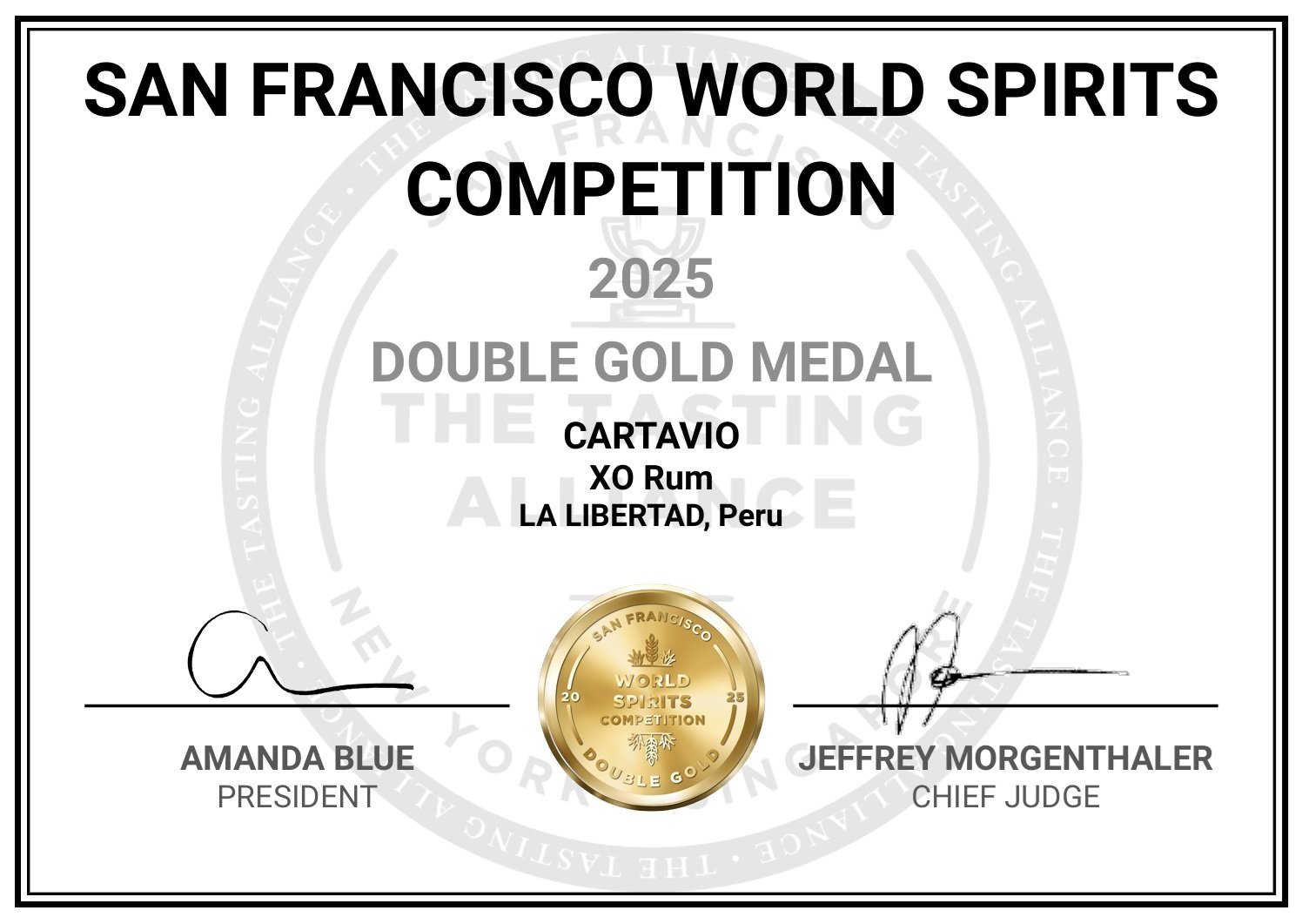 La Doble Medalla de Oro se otorga exclusivamente a aquellos productos que reciben calificaciones unánimes de oro por parte del jurado. Esto posiciona al Cartavio XO en una posición destacada del mercado global de rones añejos.