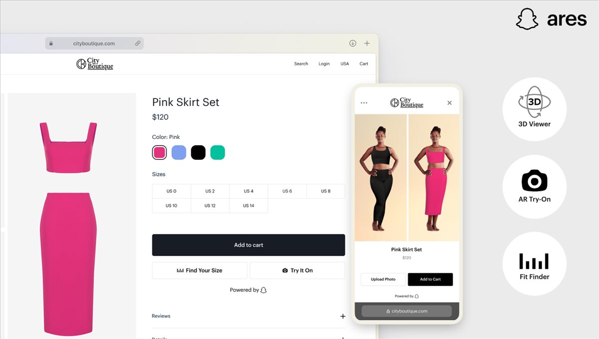 ARES unifica la tecnología de Realidad Aumentada de Snap con otras tecnologías propias de Snap como Vertebrae, Fit Analytics y Forma. Estas potencian la oferta empresarial de Realidad Aumentada de Snap. Así, Shopping Suite es la primera solución de ARES. Se trata de un conjunto de productos y servicios que ofrece interactive 3D Viewer, AR Try-On y Fit Finder. Estos están integrados directamente en las aplicaciones y sitios web de las empresas. Estará disponible para los consumidores en el segundo trimestre e incluye compras de Realidad Aumentada de ropa, calzado, accesorios y muebles para el hogar.