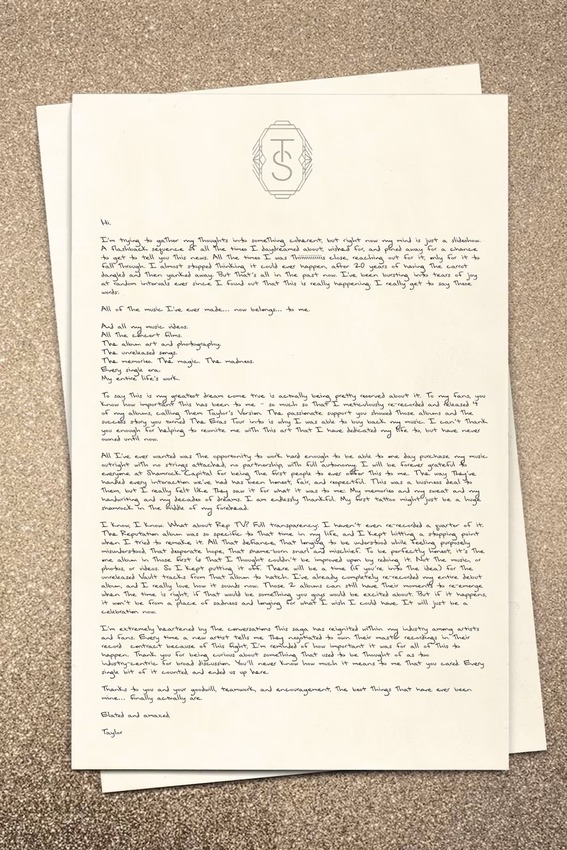 Swift agradeció a Shamrock Capital por ser la primera entidad en permitirle recuperar sus másteres, reconociendo el profundo significado detrás de su música. “Ellos lo vieron por lo que realmente es: mis recuerdos, mi sudor, mi letra y mis décadas de sueños”, escribió en una carta.