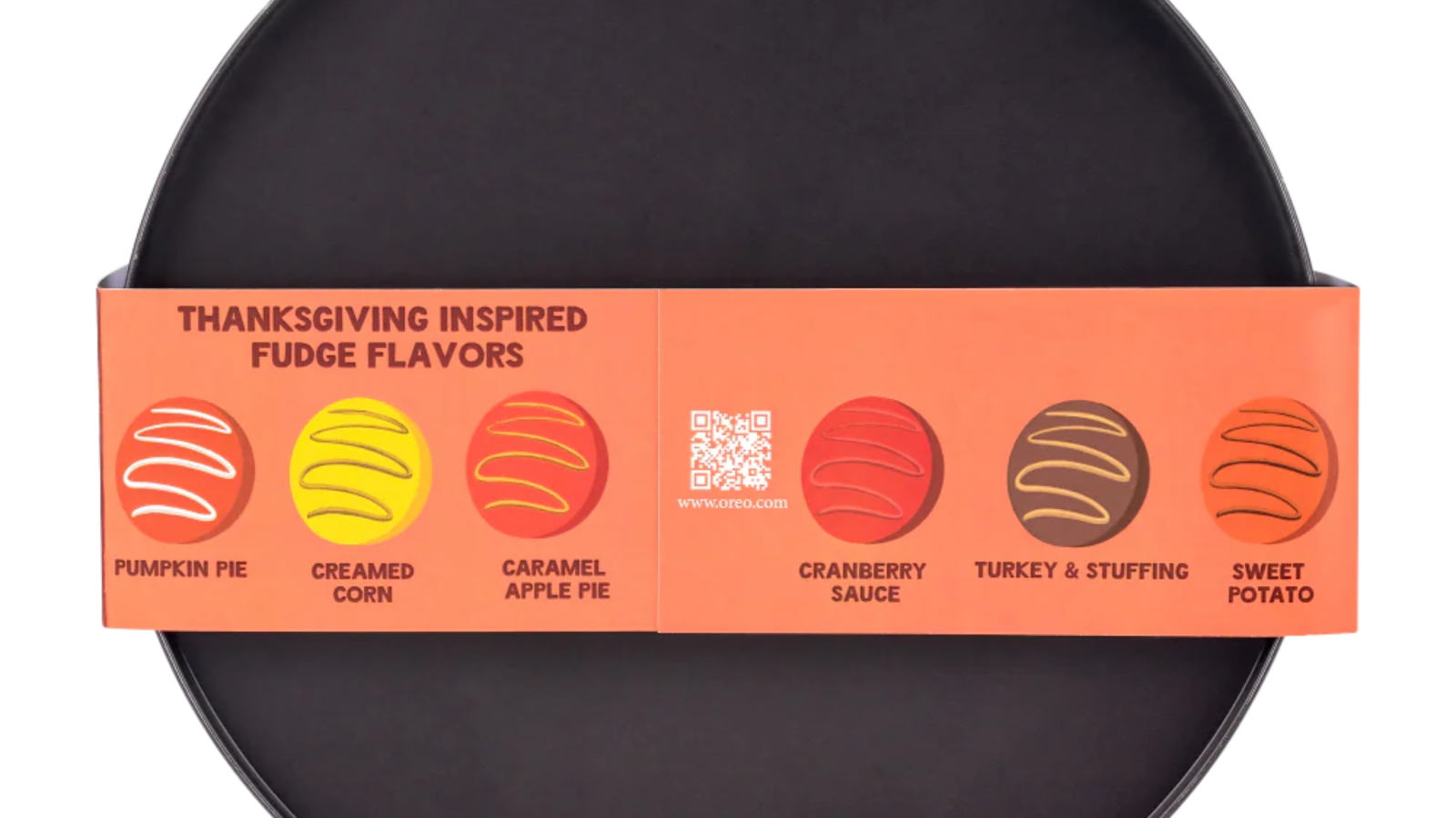 En ese sentido, cada galleta está cubierta con una capa de fudge infundido con uno de los seis sabores inspirados en la tradicional mesa estadounidense: pavo con salsa gravy, camote, crema de maíz, pastel de manzana con caramelo, pastel de calabaza y salsa de arándanos.