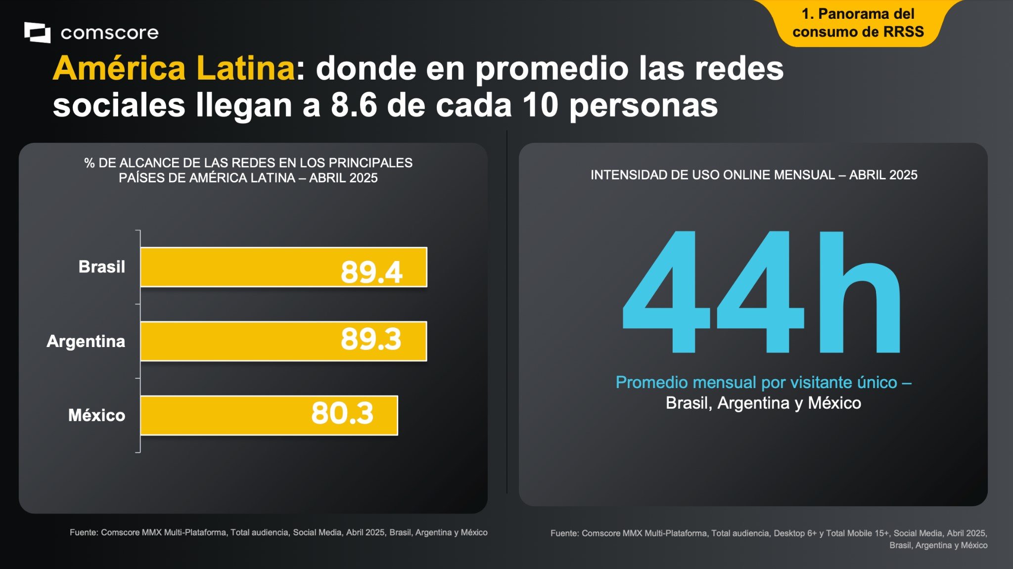 En ese sentido, Comscore, la empresa líder en medición de audiencias multiplataforma, presentó su informe anual The State of Social Media 2025. El documento revela hallazgos clave sobre el uso y consumo de redes sociales en América Latina.