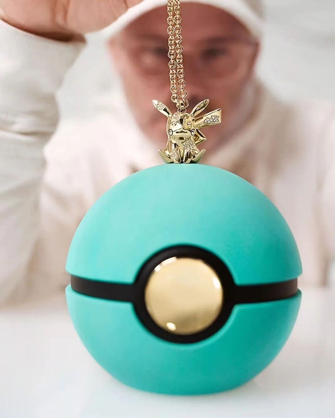 Los colgantes, elaborados en plata esterlina oxidada con detalles de diamantes, capturan la esencia de los personajes de Pokémon, mientras que los collares, disponibles en oro amarillo de 18 quilates, juegan con el distintivo color amarillo de Pikachu. La colección se presenta en dos tamaños, pequeño y grande, ambos adornados con detalles de diamantes. Los empaques también se suman al encanto: los colgantes se presentan en una caja azul exclusiva para la colección, mientras que los collares más grandes llegan en una Poké Ball azul.