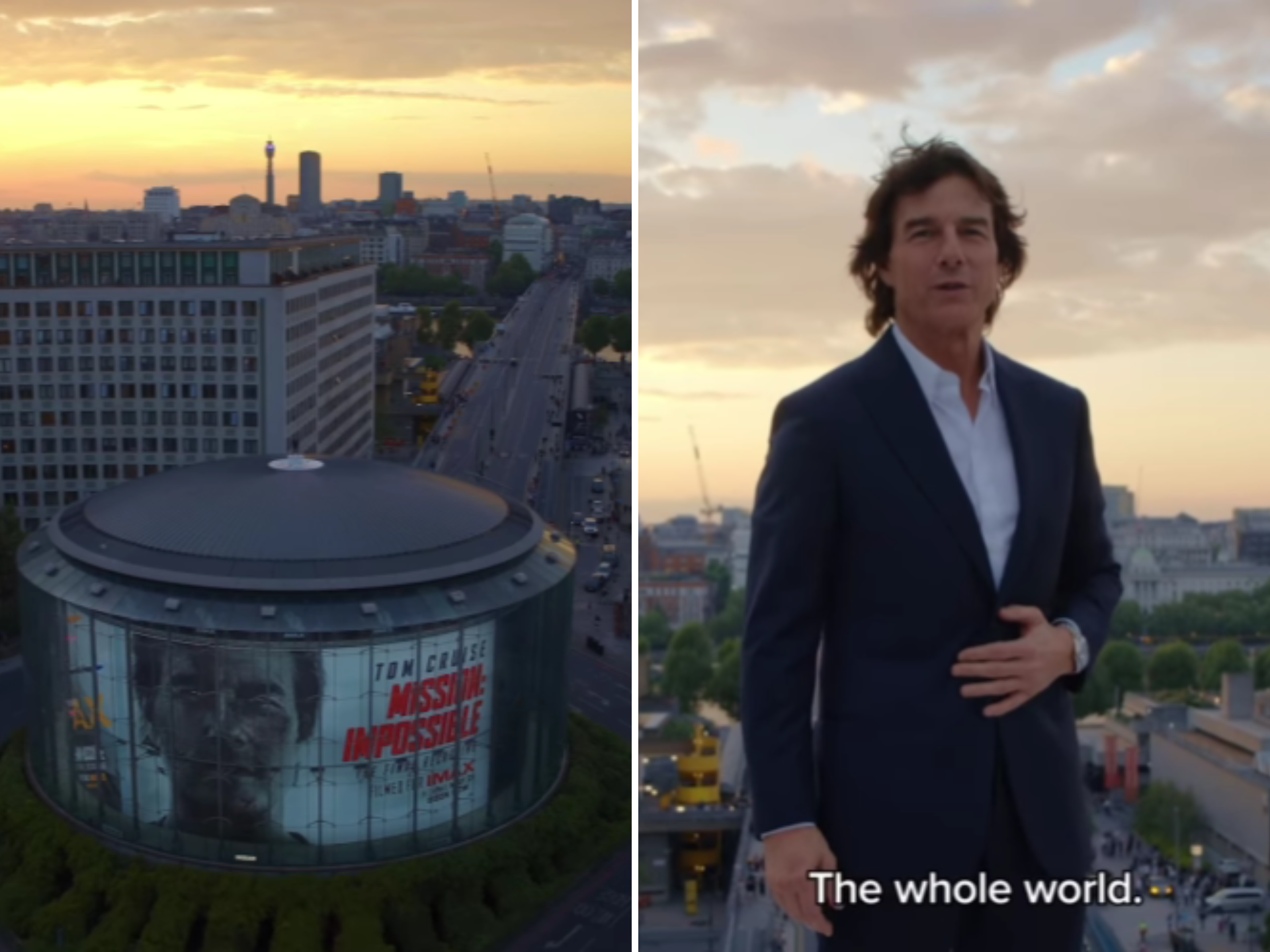 Atrayendo miles de miradas, Cruise se elevó sobre Waterloo en la pantalla más grande del Reino Unido, de 65 pies de alto y 85 pies de ancho, agregando espectáculo a un evento ya repleto de estrellas.