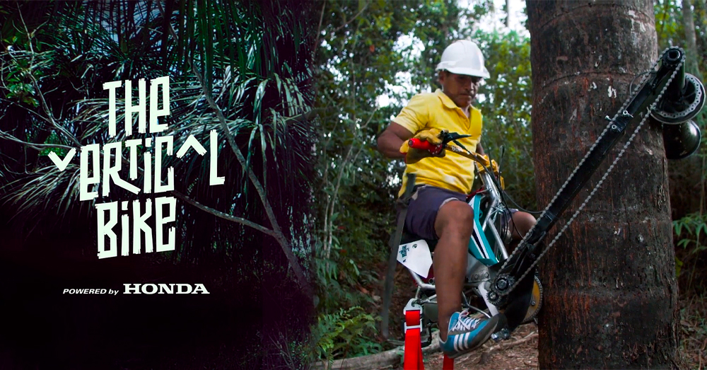 En medio de este contexto es que la agencia Ogilvy Perú y Honda crearon Vertical bike, una bicicleta que facilita la cosecha del aguaje y evita la tala de árboles, contribuyendo significativamente a proteger el ecosistema.