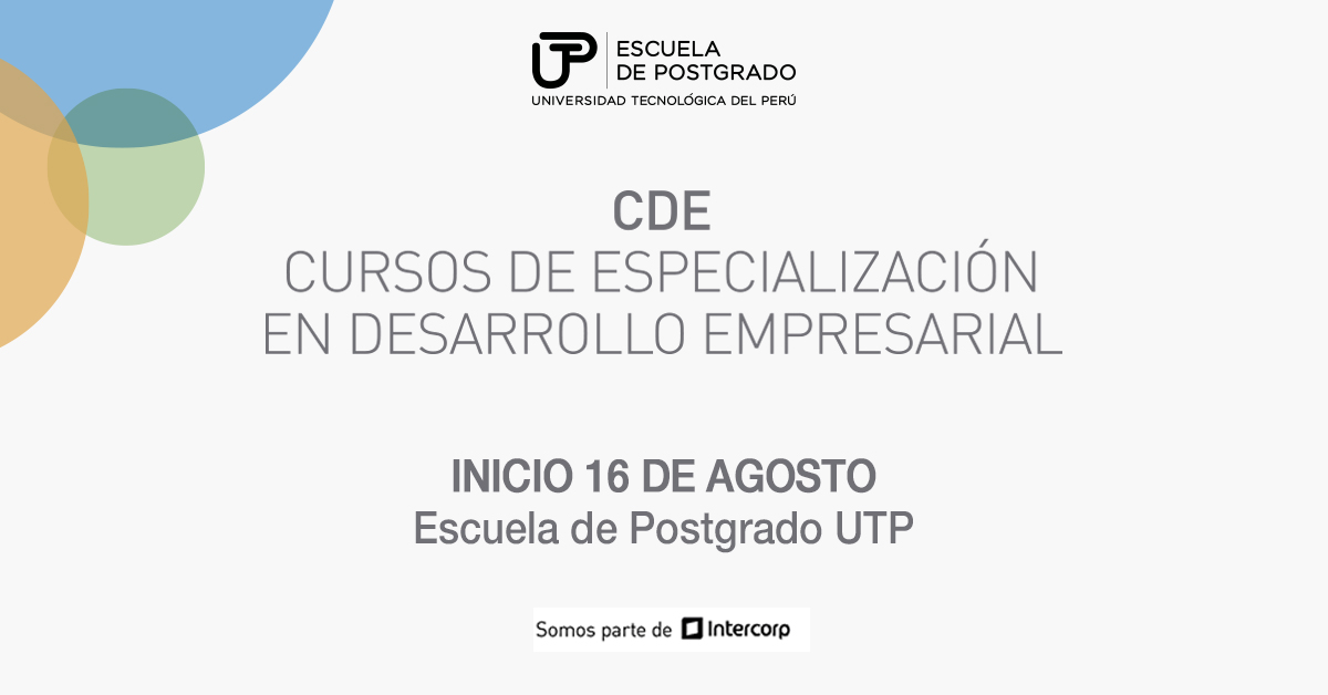 La Escuela de Postgrado de la Universidad Tecnológica del Perú – UTP, como parte de la especialidad de Marketing, Finanzas y Liderazgo, inicia el 16 de agosto un nuevo ciclo de Cursos de Desarrollo Empresarial (CDE).