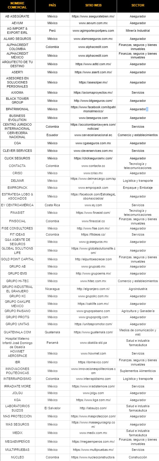 Las empresas y promotorías nominadas en este Ranking se enlistan a continuación en orden alfabético (este orden no revela el lugar que cada una ocupó en este estudio):