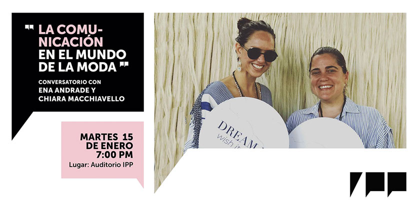 El IPP- Instituto Peruano de Publicidad presenta el Conversatorio: “La comunicación en el mundo de la Moda”, junto a las consultoras de la carrera Comunicación & Moda: Chiara Macchiavello; Diseñadora de moda, fundadora y directora de la marca Escudo y Ena Andrade Tudela; Directora de LaClinika DesignLab, agencia de comunicación integral especializada en el mundo de la moda.