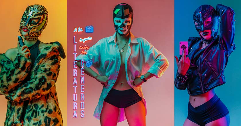 Para ello, crearon piezas gráficas de gran impacto para que produzcan sensaciones fuertes en el espectador. La actitud decidida y atrevida de la modelo junto a su apariencia andrógina en algunos casos, se complementa con un atrayente vestuario y maquillaje. La Directora de Arte Katherine Saavedra, publicista de la Católica y alumna de la carrera de Comunicación y Marketing de la Moda del IPP nos cuenta un poco más de la propuesta fotográfica: “Nos inspiramos en una composición basada en tonos cálidos y fríos que asemejen las luces neón de los escenarios y reflejen a la literatura como un gran espectáculo. Tal como se vive LuchaLibro en el escenario de La Noche de Barranco”.
