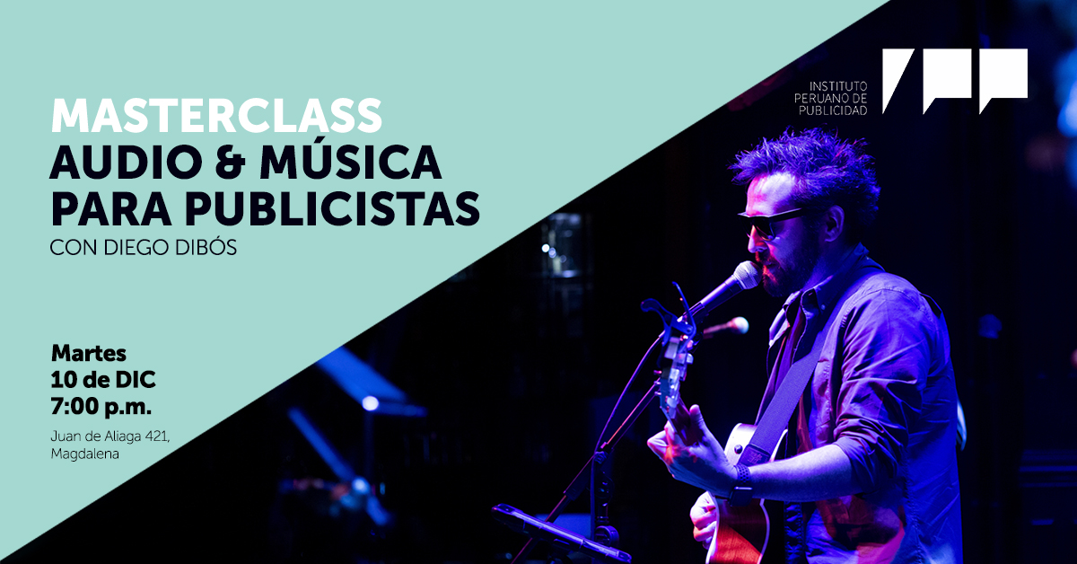 La Masterclass es gratuita (previa inscripción) y se llevará a cabo el martes 10 de diciembre a las 7:00pm en IPP (Av. Juan de Aliaga 421, Magdalena). Se sorteará dos medias becas para el curso: Audio y Música para Publicistas entre todos los asistentes.