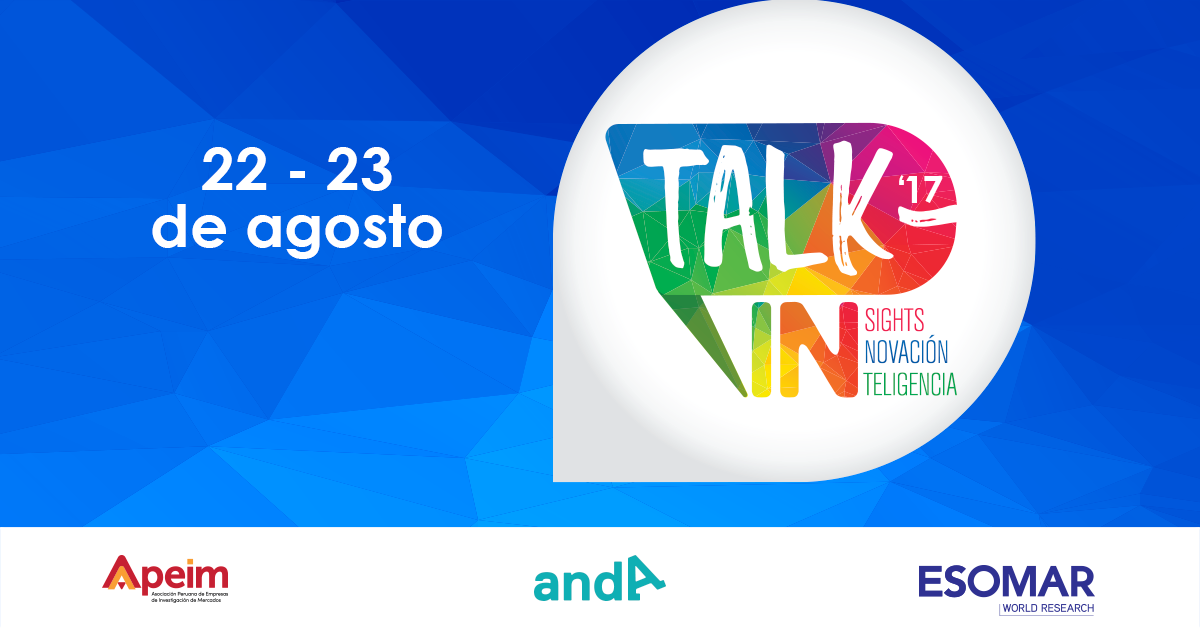 Este 22 y 23 de Agosto se llevará a cabo TALKIN 17, un evento organizado por ANDA y APEIM y la alianza estratégica con ESOMAR en donde las mentes más lúcidas de la escena internacional conversarán sobre las nuevas tendencias y la forma creativa de darle vida a la data y así producir un vínculo entre las marcas y sus audiencias.